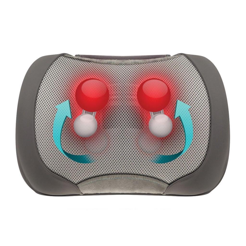 Gối massage HoMedics SP-100H-GB sử dụng công nghệ massage 3D Shiatsu xoa bóp hình tròn và rung động kèm nhiệt giúp nới lỏng và thư giãn các cơ bắp bị đau và căng cứng một