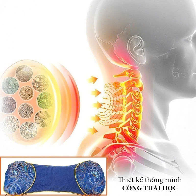 Gối ngải cứu thảo mộc, cắm điện làm nóng, giúp thư giãn vùng cổ vai gáy, dễ dàng đi vào giấc ngủ