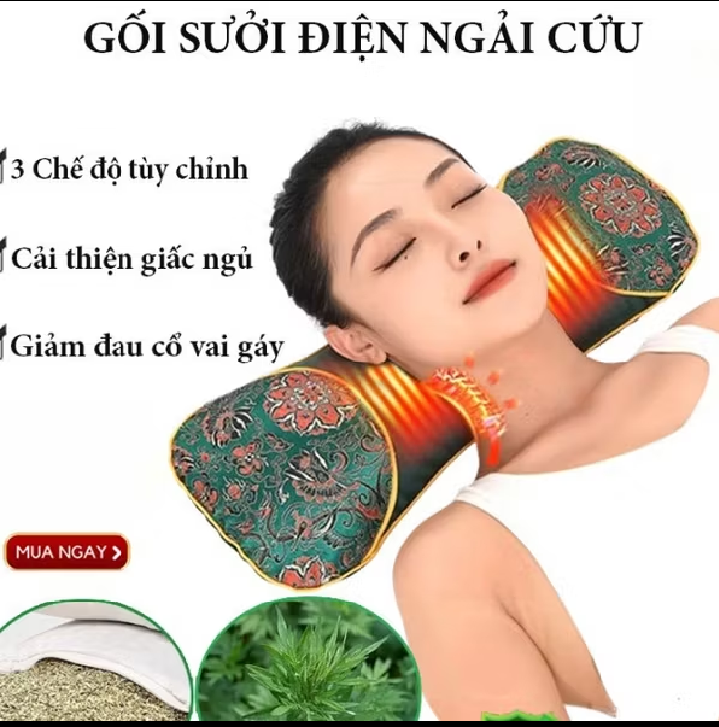 Gối ngải cứu điện giúp giảm đau mỏi cổ vai gáy đặc biệt ngủ ngon
