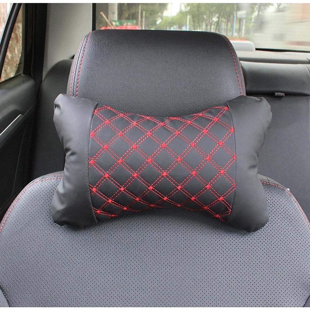 Mua tại Tiktok- Gối tựa đầu bọc da (Đen-đỏ hoặc Đen-trắng) có thiết kế đẹp, sang trọng sẽ giúp tô điểm cho không gian nội thất ô tô
