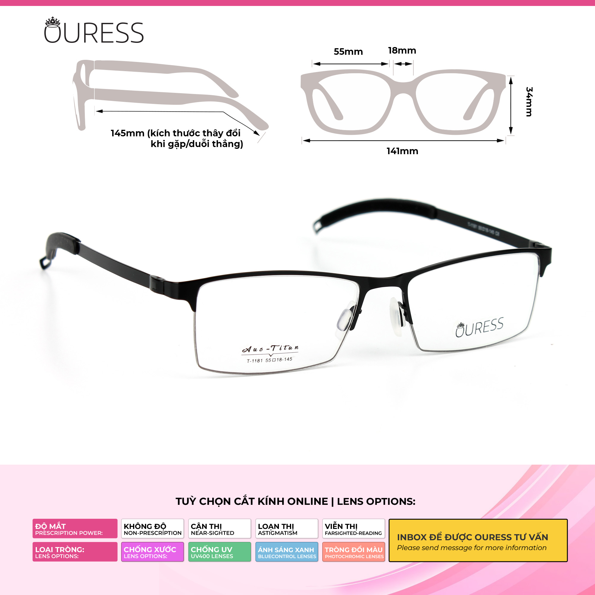 GỌNG KÍNH TITANIUM NỬA KHUNG ( XẺ CƯỚC) CAO CẤP THỜI TRANG NAM