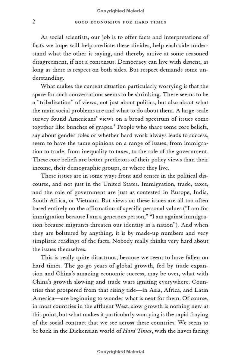 In this revolutionary book, renowned MIT economists Abhijit V. Banerjee and Esther Duflo take on this challenge, building on cutting-edge research in economics explained with lucidity and grace. Original, provocative, and urgent, Good Economics for Hard Times makes a persuasive case for an intelligent interventionism and a society built on compassion and respect. It is an extraordinary achievement, one that shines a light to help us appreciate and understand our precariously balanced world.