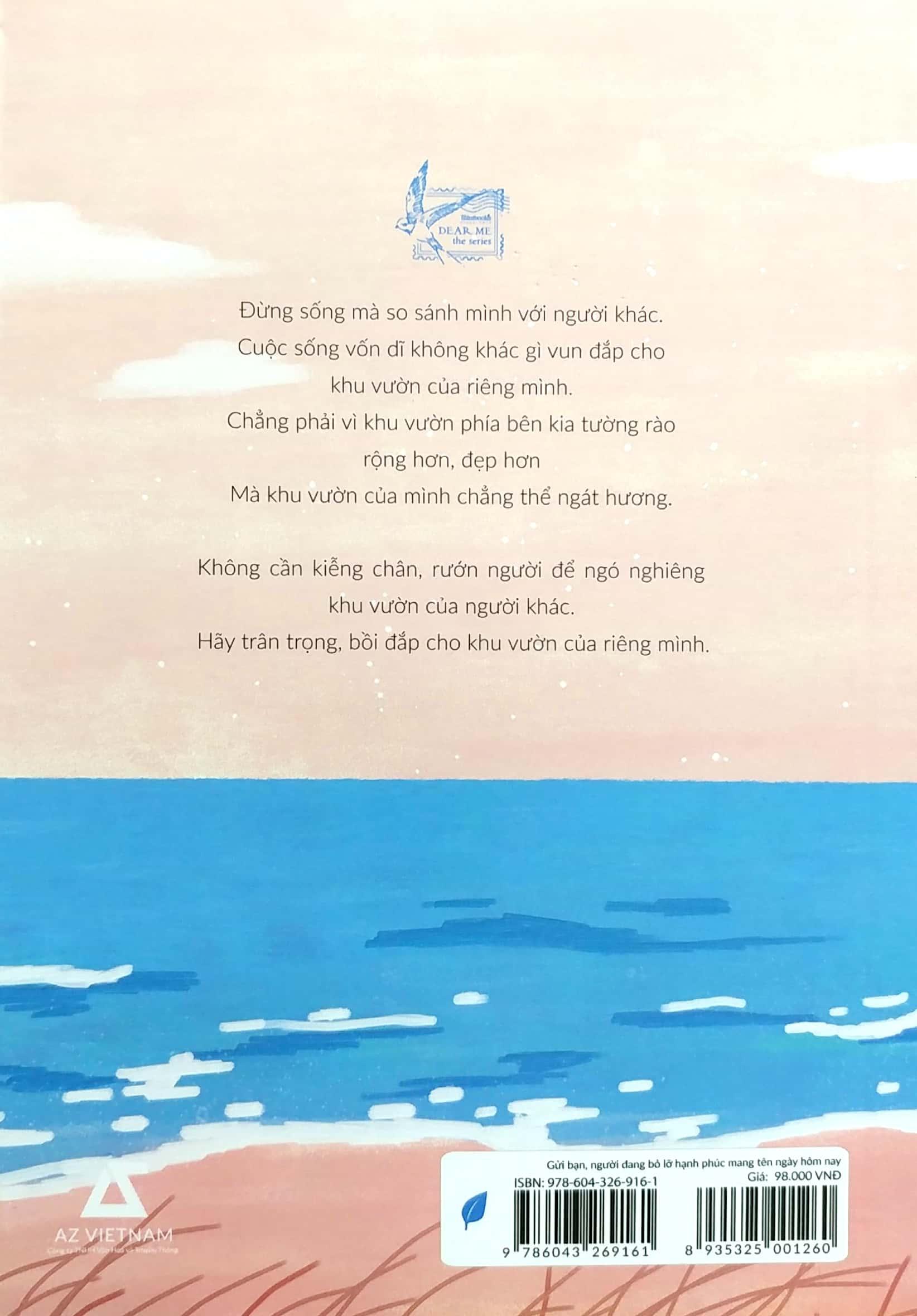 Đừng sống mà so sánh mình với người khác. Cuộc sống vốn dĩ không khác gì vun đắp cho khi vườn của riêng mình. Chẳng phải vì khu vườn phía bên kia tường rào rộng hơn, đẹp hơn, mà khu vườn của mình chẳng thể ngát hương. Không cần kiễng chân, rướn người để ngó nghiêng khu vườn của người khác. Hãy trân trọng, bồi đắp cho khu vườn của riêng mình.