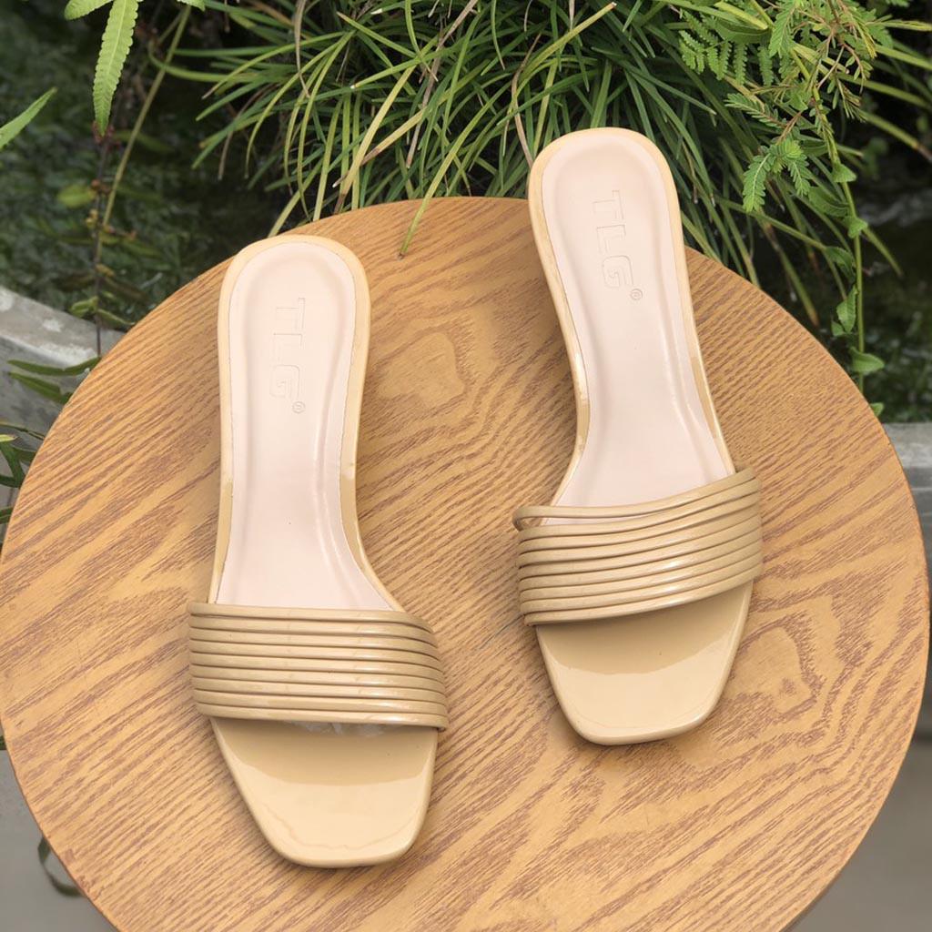 - Dép nữ cao gót quai ngang một bản TRường Hải màu đen gót vuông 8cm da mềm DN139 thiết kế với kiểu dáng ôm chân, thon gọn, thoải mái di chuyển mà không lo