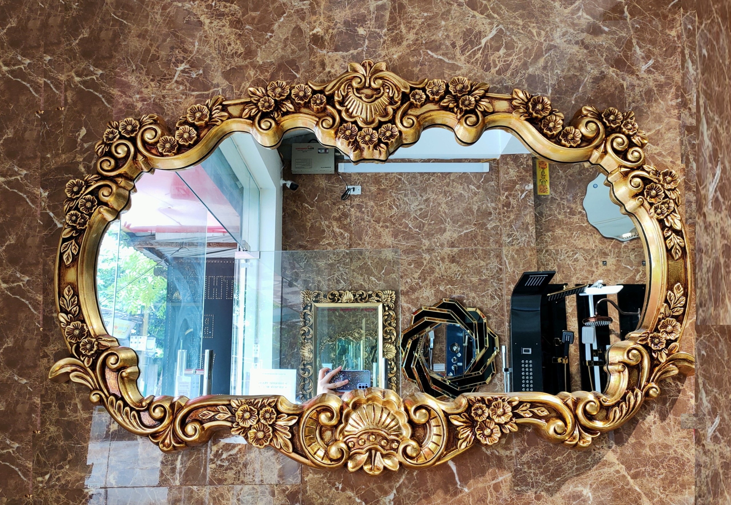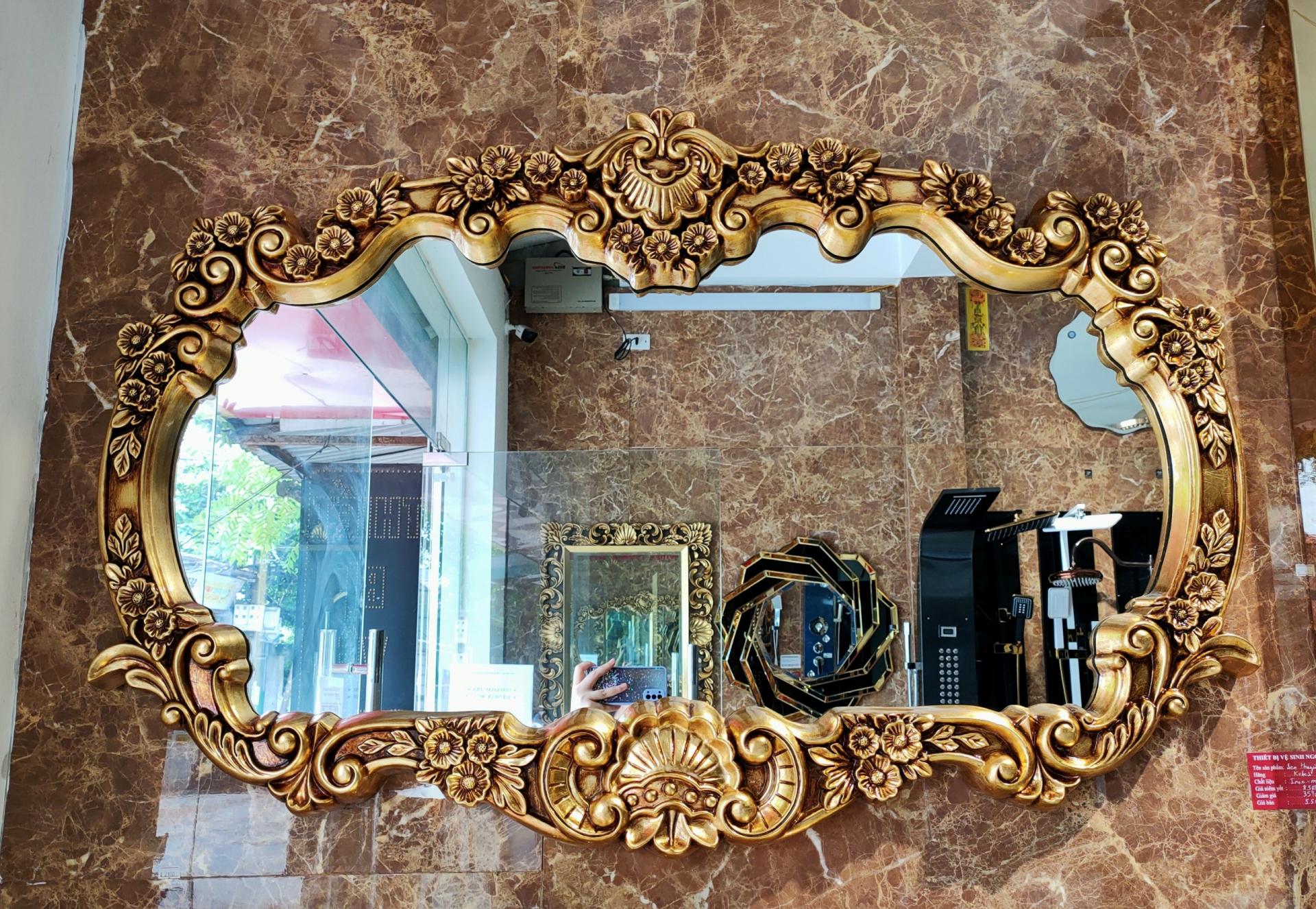 Mô tả sản phẩm - Kích thước: 76 x 96 (cm) - Chất liệu: Nhựa PU siêu bền, chống cháy, gương Bỉ tráng bạc - Sơn: Sherwin (tiêu chuẩn Mỹ) - Dát vàng: Công nghiệp