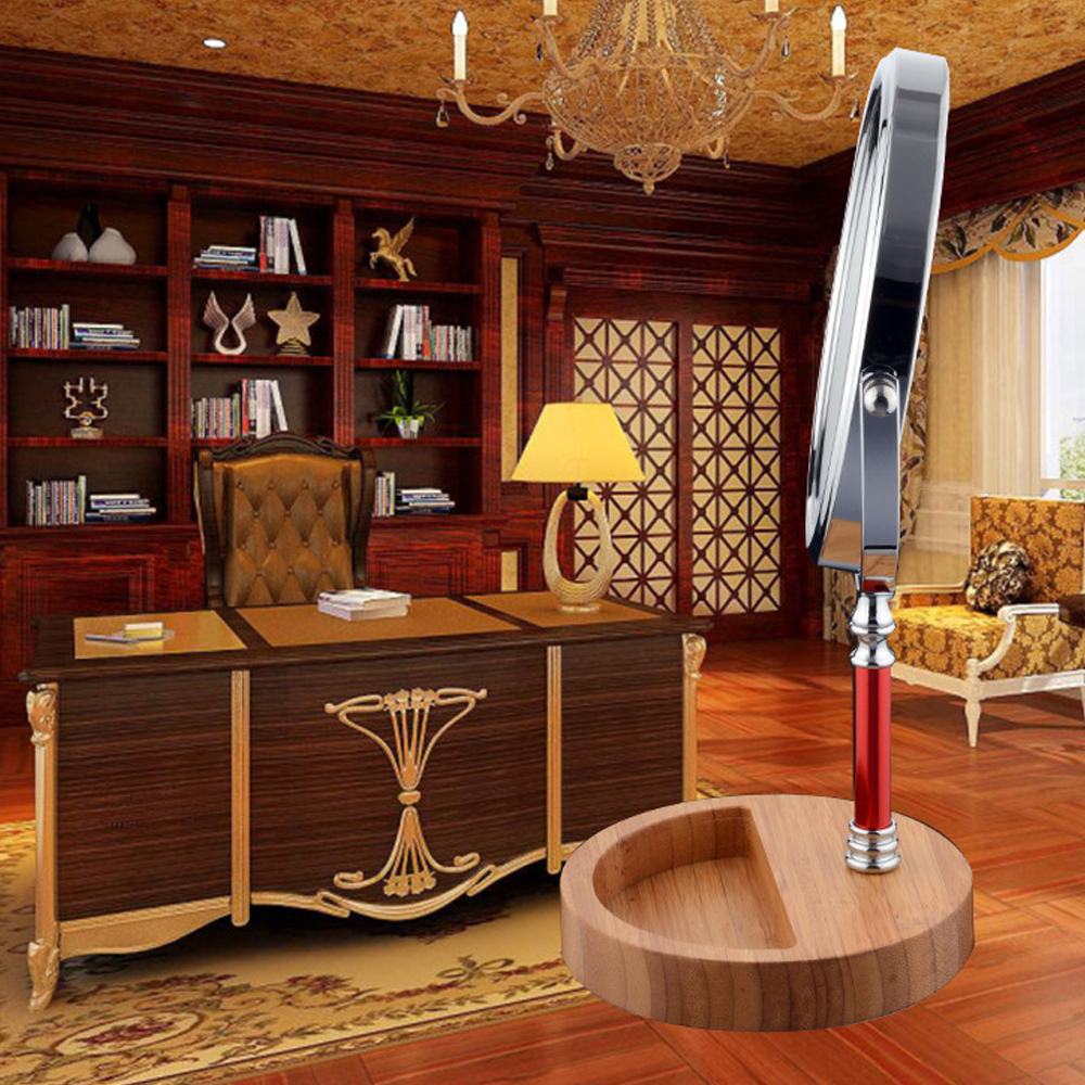 Đặc điểm kỹ thuật: - Kích thước: Đường kính mặt gương 17cm x Chiều cao 31cm x đế rộng 14cm - Chất liệu: Thép không gỉ mạ Crom sáng bóng, chịu nước, chống bám vân tay, dễ lau chùi, chống chói, đế gỗ tre - Màu Bạc - Khối lượng: 0.65 kg