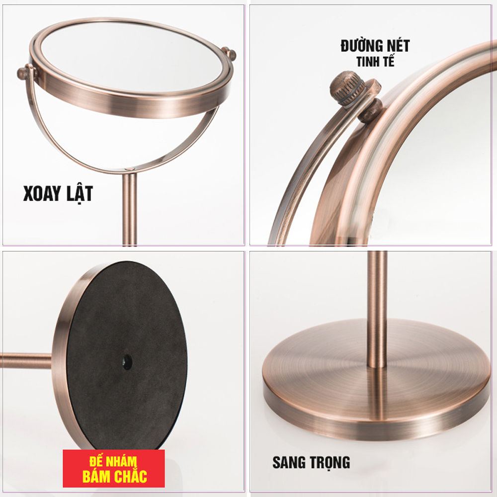 Gương trang điểm để bàn Đồng đỏ Copper, phóng đại zoom x3, 2 mặt xoay siêu nét Minh House Lưu ý: Quý khách chọn đúng Size, loại gương nhé. Mẫu 1: Gương có chân, mẫu