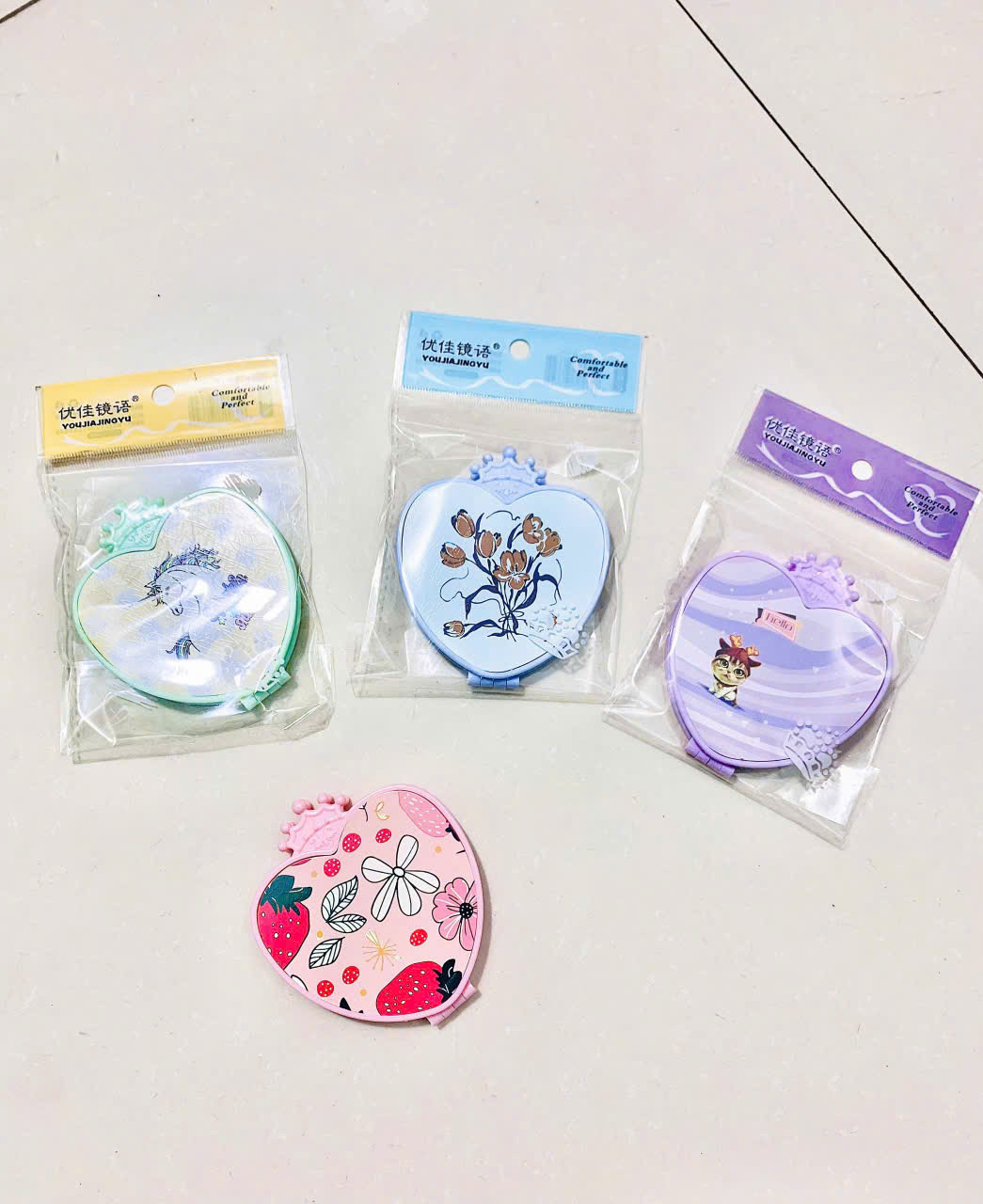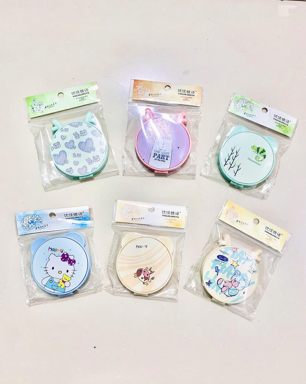 Gương Trang Điểm Mini Gấp Gọn Họa Tiết - Phù Hợp Mang Đi Mọi Lúc, Giao Màu Ngẫu Nhiên Gương trang điểm cầm tay mini gấp gọn với họa tiết đẹp mắt là phụ kiện không thể thiếu trong túi xách của mỗi cô gái. Sản phẩm được thiết kế nhỏ gọn, tiện lợi để bạn có thể mang theo mọi lúc, mọi nơi. Gương có thể gập lại, giúp tiết kiệm không gian và bảo vệ mặt gương khỏi bụi bẩn, trầy xước. Với họa tiết đa dạng và màu sắc dễ thương, chiếc gương này không chỉ hỗ trợ bạn trang điểm, chỉnh sửa lại kiểu tóc mà còn là món đồ trang trí xinh xắn. Tính năng nổi bật: