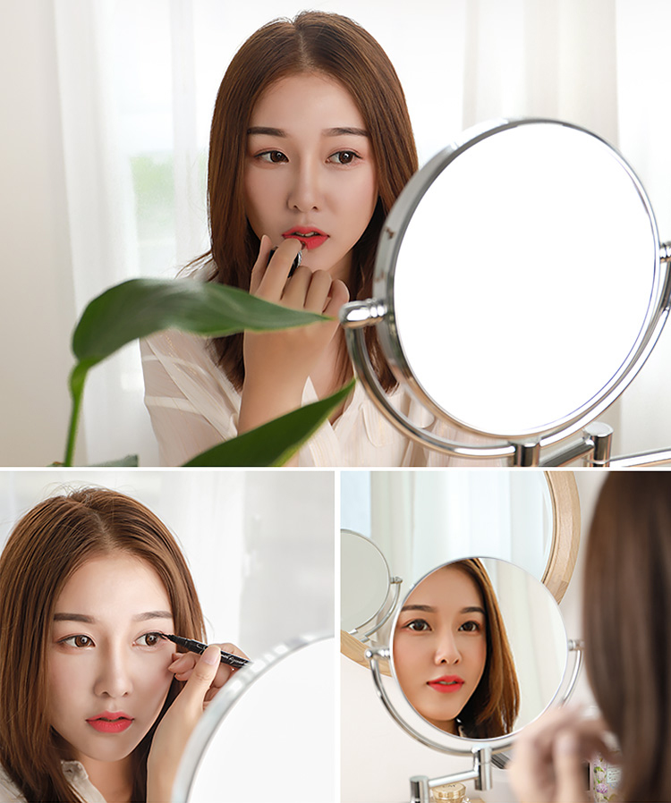 Gương trang điểm phóng đại 3 lần, xoay 360 độ, 2 mặt siêu nét, để bàn, Thép không gỉ, Size 18cm, 20cm, Minh House G31 Mô tả: Rất là khó chịu khi trang điểm, tỉa