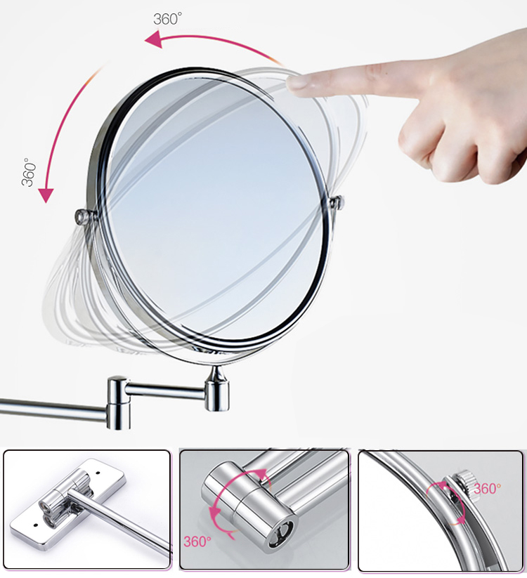 Gương trang điểm phóng đại 3 lần, xoay 360 độ, 2 mặt siêu nét, treo tường phòng tắm, phòng ngủ, Khách sạn, resort, Inox SUS 304, Size 15cm, 18cm, 20cm, Minh House Mô tả: Rất