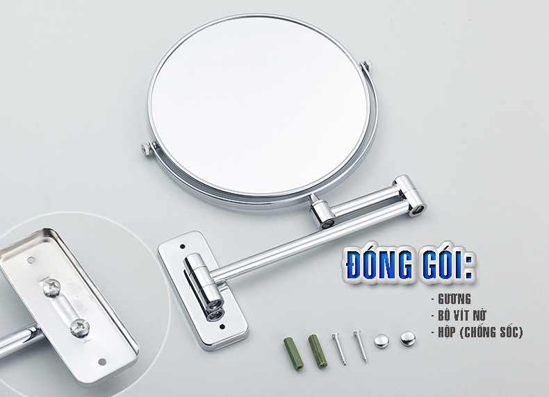 - Tay gương: Chiều dài tổng thể: 32cm, gồm 2 khúc, khúc 1: 20cm, khúc 2: 9cm, đế: 3cm Lắp đặt: Dễ dàng lắp đặt, đi kèm với gương là vít và nở. Chỉ cần khoan 2 lỗ nhỏ bắt vít vào là xong Thiết kế trang nhã, tinh tế, sang trọng sẽ phù hợp cho bất kỳ gia đình nào từ phòng tắm, phòng ngủ, bàn trang điểm, từ gia đình, khách sạn, resort… Đóng gói: 1 Gương xoay phóng đại + bộ vít nở Được đóng trong hộp tiêu chuẩn có chống sốc, chống vỡ, bọc nynon khi vận chuyển Sản phẩm tặng kèm: Móc giá đỡ điện thoại (Cho mọi điện thoại) Sản phẩm có nhiều kích cỡ. Vui lòng chọn Sản phẩm giống mô tả, hình ảnh và video đăng tải Cam kết: Gian hàng uy tín được Tiki công nhận. Mọi hư hỏng, lỗi khi nhận hàng và trong quá trình sử dụng được đảm bảo theo chính sách của Tiki và Nhà bán