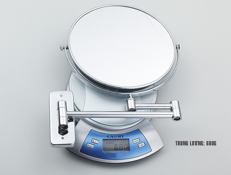 - Gương có bộ khung giá rất linh hoạt với khớp nối có thể kéo ra hay gấp sát vào tường để tiết kiệm diện tích khi không sử dụng. Kích thước: