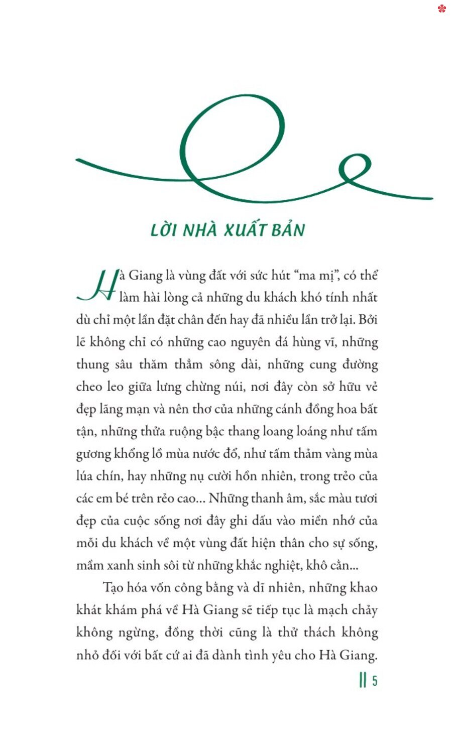 Mua tại TiktokCuốn sách Hà Giang - Miền đá nở hoa thể hiện tâm huyết của nhóm tác giả trên hành trình khám phá mảnh đất này để lý giải một cách dung dị những câu hỏi như: tại sao giữa mênh mông đá xám, Hà Giang lại bung tỏa bức tranh đa sắc về lịch sử, văn hóa, ẩm thực độc đáo như vậy; tại sao ở nơi lạnh giá mà tình người luôn ấm nồng và tràn đầy đến thế… Với những nghiên cứu, đặc tả sâu sắc, những ký sự, trải nghiệm chân thực và những bức ảnh minh họa sinh động, nhóm tác giả đã lần lượt tìm ra câu trả lời qua từng bài viết trong cuốn sách.