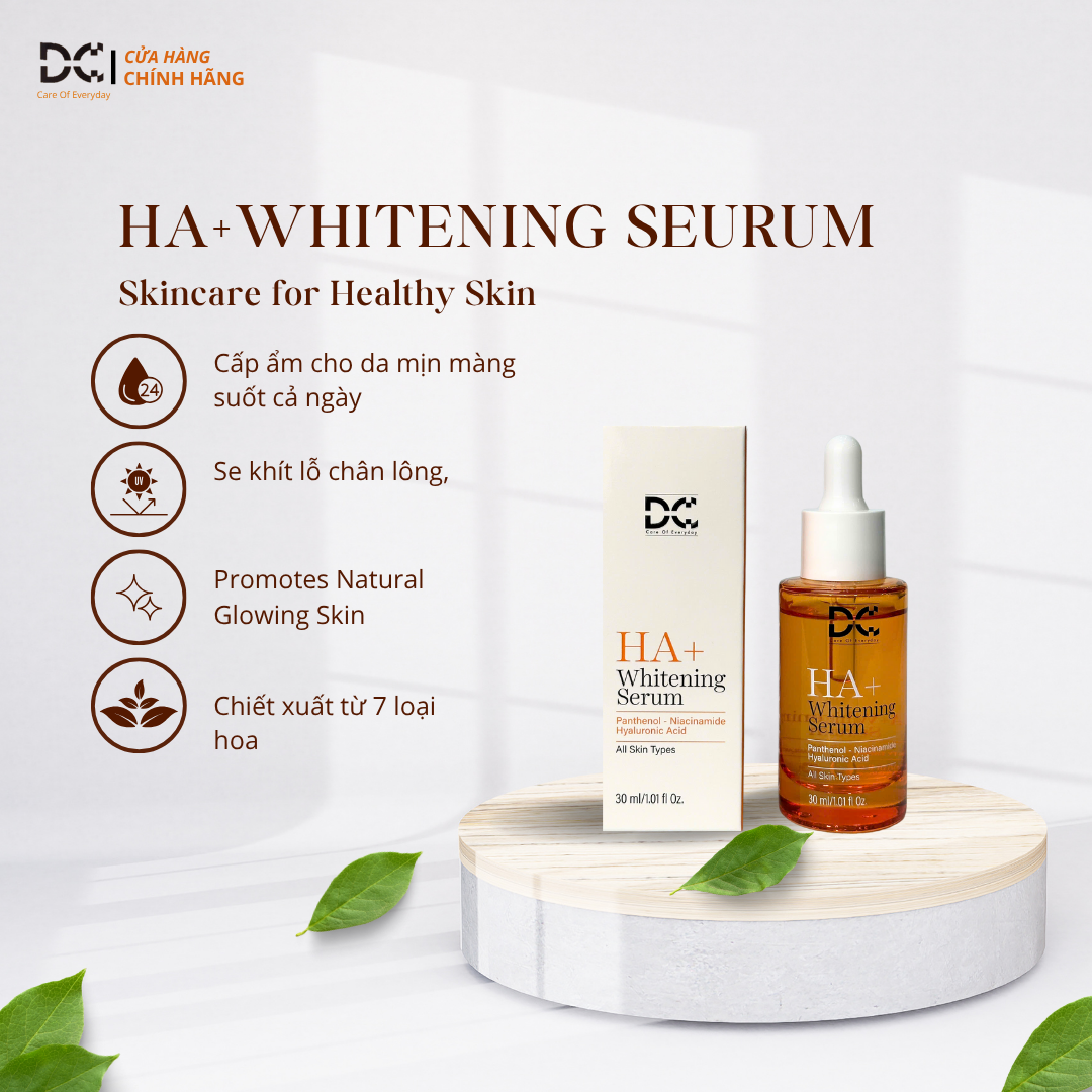 - HA + Whitening Serum DC - Serum Dưỡng Trắng Da 30ml có tính năng cấp ẩm tối ưu từ hoạt chất HA giúp da săn chắc mịn màng và phù hợp với mọi loại da.