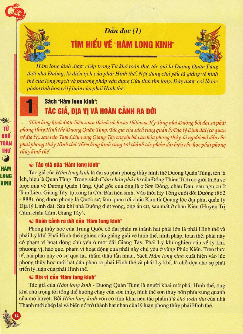 “Hám long kinh” của Tổ sư phong thủy Dương Quân Tùng được xem là một trước tác kinh điển chuyên luận về long mạch, được đưa vào “Tứ khố toàn thư” - bộ bách khoa toàn thư lớn nhất của Trung Quốc cổ đại.