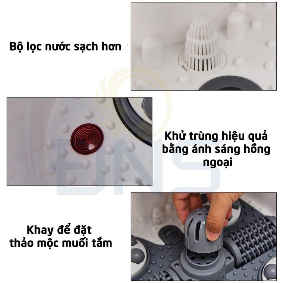 - Xông hơi bằng công nghệ siêu âm - Kiểm soát mức nhiệt hơi tự động với 3 chế độ cài đặt - Massage con lăn kích thích các điểm huyệt dưới gan bàn chân