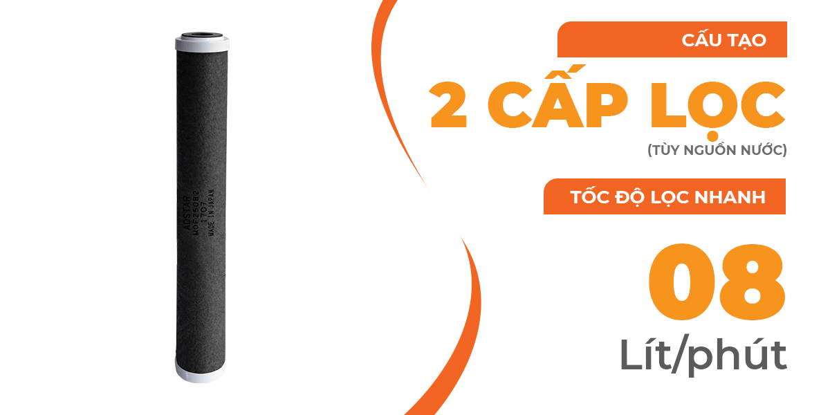- Bộ lọc 2 lớp sử dụng than hoạt hóa từ gáo dừa