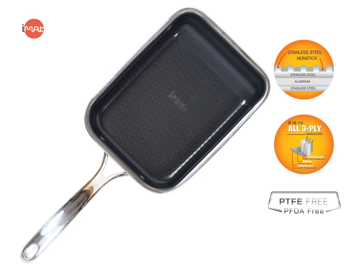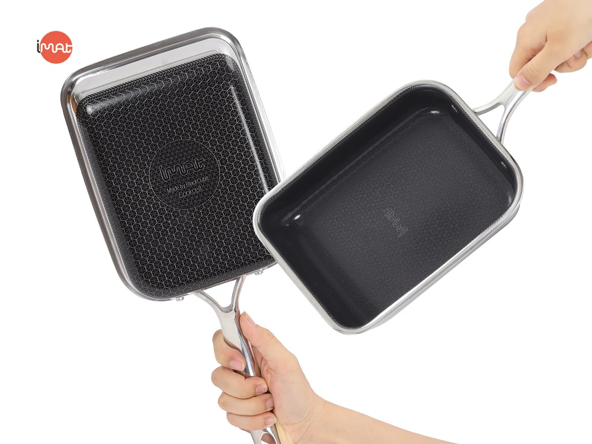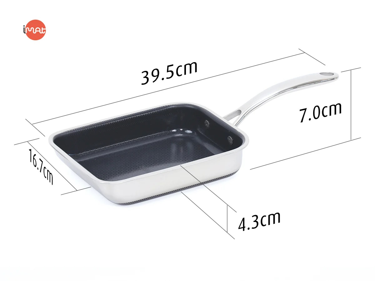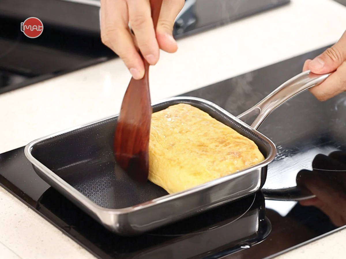 Chảo iMat Hybrid 15cm tay cầm dài, để chế biến món trứng cuộn Nhật Bản (Tamagoyaki) bằng cách chiên từng lớp trứng và cuộn thành khối vuông. Thiết kế chữ nhật nhỏ gọn và cấu trúc ba lớp cao cấp giúp chảo dẫn nhiệt tốt, tạo ra món trứng cuộn thơm ngon hơn. Ngoài ra, chảo còn phù hợp để chiên rán lượng thực phẩm nhỏ như thịt, cá, rau củ. lớp chống dính ceramic kết hợp công nghệ Blackcube giúp tăng cường khả năng chống dính và bền bỉ, không chứa PFOA và PTFE, đảm bảo an toàn sức khỏe