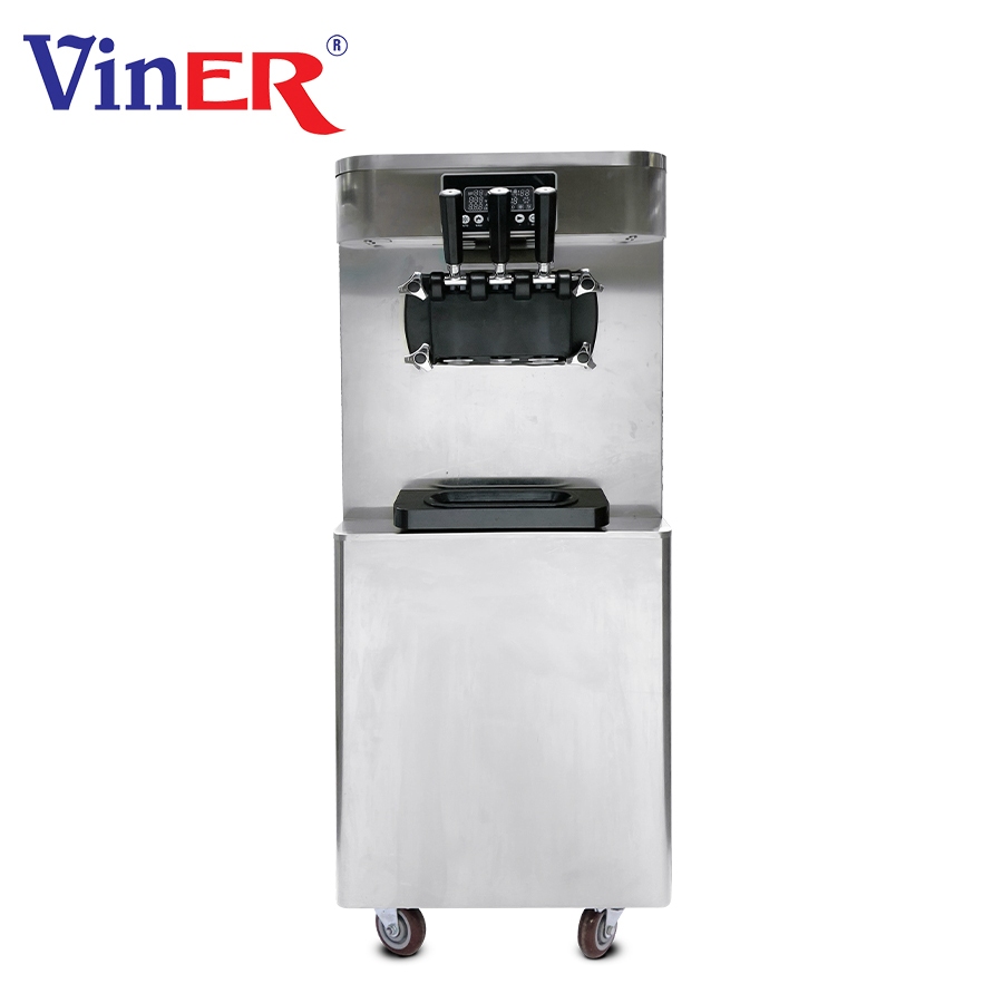 - Đánh giá các tính năng vượt trội của máy làm kem tươi 2 máy nén dạng đứng Viner Máy làm kem tươi kiểu đứng 2 máy nén Viner được sản xuất trên dây chuyền công nghệ hiện đại của hãng Viner, đạt tiêu chuẩn chất lượng cao ISO 9001:2015, linh kiện được nhập khẩu toàn bộ. Sản phẩm cho phép người dùng tạo ra nhiều loại kem khác nhau như: Kem socola, vani, kem dâu… chỉ trong một thời gian ngắn. 1.1 Các ưu điểm của máy làm kem 2 máy nén dạng đứng Viner Máy làm kem 2 máy nén dạng đứng Viner ứng dụng công nghệ hiện đại, nổi bật với hệ thống máy nén tách biệt, bao gồm: Máy nén làm đông lạnh kem và máy nén bảo quản kem. Kem chứa trong khoang lạnh, để qua đêm mà không bị làm giảm chất lượng. Hộc chứa có dung tích lớn, khách hàng không phải trực để tiếp nguyên liệu thường xuyên. Sau đây làm một số ưu điểm vượt trội của máy làm kem tươi 2 máy nén dạng đứng Viner so với các sản phẩm truyền thống khác trên thị trường: 1.1.1 Đa dạng sản phẩm, tích hợp nhiều tính năng ưu việt Máy sản xuất kem tươi dạng đứng 2 máy nén Viner gồm 1 máy nén chuyên làm kem và 1 máy nén chuyên bảo quản giúp chất lượng kem luôn đạt độ tươi, ngon và đạt tiêu chí tiết kiệm nhiên liệu cho người sử dụng. Sản phẩm đáp ứng đa dạng nhu cầu kinh doanh quy mô từ nhỏ đến lớn của khách hàng với nhiều công suất khác nhau. 1.1.2 Cho chất lượng kem tươi tốt nhất Máy làm kem tươi 2 máy nén dạng đứng Viner được ứng dụng dây chuyền công nghệ hiện đại hàng đầu với hệ thống làm lạnh mạnh mẽ, tích hợp 2 máy nén cao cấp giúp làm nguội và đông kem nhanh chóng, độ lạnh chuẩn. Từ đó giúp tạo ra cấu trúc mịn và không bị tạo đá trong kem, sống kem hay sượng kem, giúp kem ngon hơn, luôn đảm bảo chất lượng tốt nhất. 1.1.3 Hệ thống điều khiển thông minh, tự động 100% Thiết kế hệ thống làm kem khép kín với bảng mạch điều khiển inverter thông minh, tự động 100%, mang lại sự tiện lợi và an toàn cho người sử dụng trong quá trình vận hành. Máy làm kem tự động Viner cho phép người dùng điều chỉnh thời gian và nhiệt độ phù hợp, đảm bảo kem được chế biến đúng cách, đạt được độ mát và cấu trúc lý tưởng. 1.1.4 Ứng dụng công nghệ hiện đại, log máy chuyên dụng Máy làm kem tươi 2 log dạng đứng Viner ứng dụng công nghệ tiên tiến, hiện đại hàng đầu năm 2023. Cùng với đó là sử dụng log máy chuyên dụng đến từ thương hiệu Embraco của Ý. Giúp máy vận hành bền bỉ, êm ái, không gây tiếng ồn khó chịu, ảnh hưởng đến năng suất lao động, ảnh hưởng đến khách hàng. 1.1.5 Chất liệu inox cao cấp Thiết kế luxury với toàn bộ vỏ máy, khay chứa và các bộ phận tiếp xúc trực tiếp với kem đều được làm từ chất liệu inox 304 cao cấp, sáng bóng, bền đẹp, không bị ăn mòn, han gỉ theo thời gian. Chất liệu này vừa đảm bảo tính thẩm mỹ cao, phù hợp với mọi không gian kinh doanh lại đảm bảo vệ sinh, an toàn thực phẩm, dễ dàng vệ sinh, lau chùi mà không sợ xước bề mặt. 1.1.6 Tiết kiệm nguyên liệu, tiết kiệm chi phí Máy kem dạng đứng 2 máy nén Viner cam kết chỉ sử dụng log máy Embraco đến từ Ý, là log máy chuyên lạnh công nghiệp, đảm bảo độ lạnh chuẩn, nhanh, 1 log chuyên làm kem, 1 log chuyên giữ lạnh vừa giúp tăng năng suất lại tiết kiệm thời gian, từ đó giúp tiết kiệm điện. Bên cạnh đó, máy làm kem lạnh Viner sử dụng mạch điều khiển Inverter thông minh, tự động với quy trình làm kem hoàn toàn khép kín giúp tiết kiệm sức lao động, tiết kiệm nhân công và các các chi phí khác. Sản phẩm được tích hợp công nghệ ủ kem qua đêm, giúp bảo quản lạnh qua đêm, giữ nguyên chất lượng tươi ngon để hôm sau vẫn bán bình thường, không phải vệ sinh máy làm kem thường xuyên. VINER cung cấp sản phẩm giá cả hợp lý với CHIẾT KHẤU CAO cho đại lý.