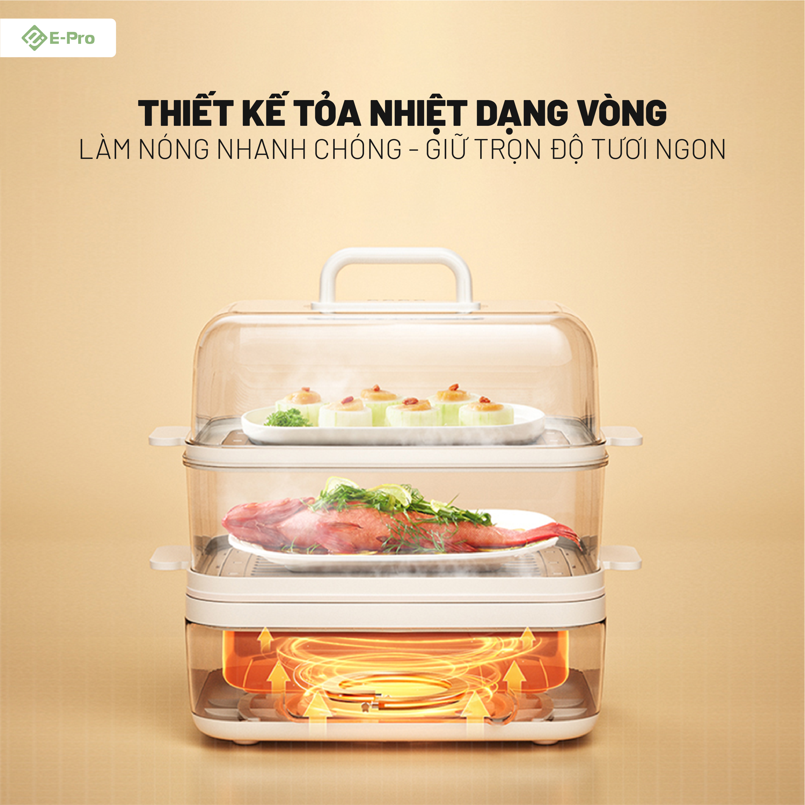 ✨[Hàng chính hãng] Nồi lẩu hấp 3 tầng E-PRO, dung tích 18L, công suất 1200W