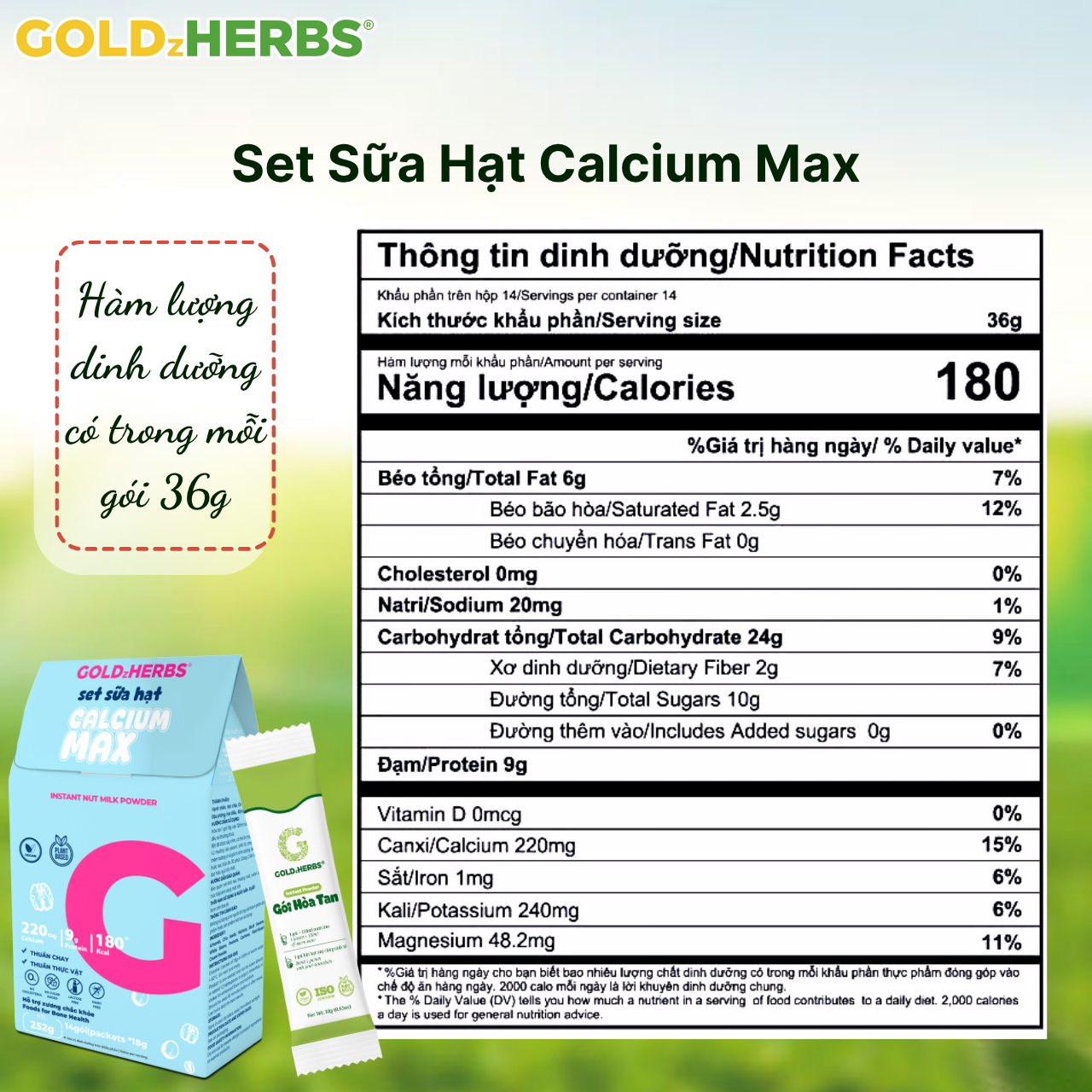 Bột sữa hạt GoldzHerbs Calcium Max là sự kết hợp hoàn hảo của các loại hạt dinh dưỡng. Tiện dụng, nhanh gọn: 01 gói + 200ml nước nóng, bạn có ngay: