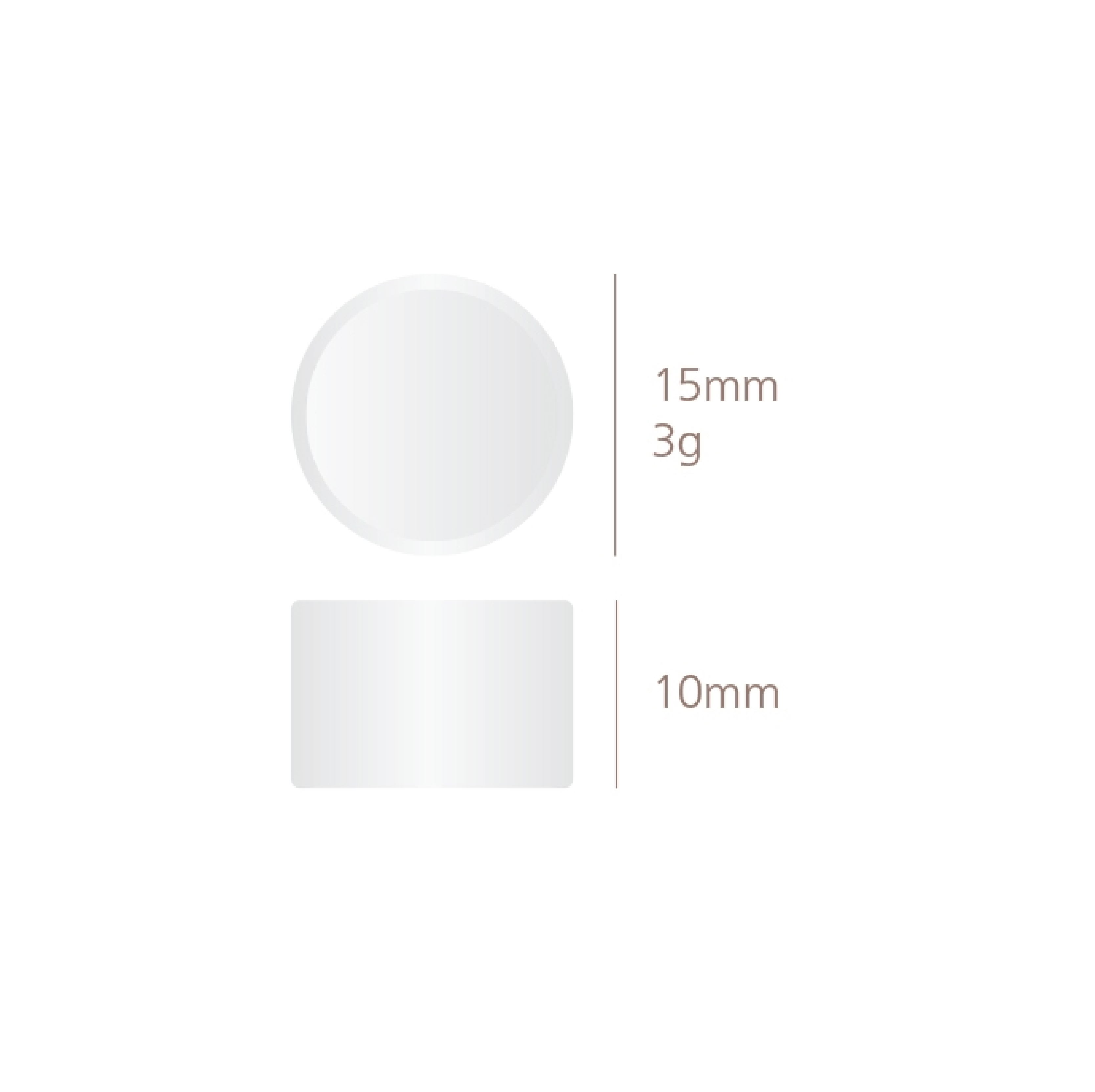 - Kích thước viên vệ sinh (rộng x cao): 15 x 10 mm