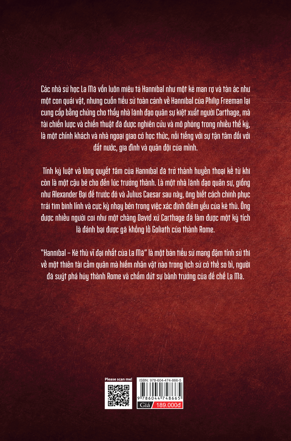 Ông sinh ra ở đất nước Carthage ưa giao thương hơn chiến tranh và luôn bị các sử gia La Mã mô tả là một kẻ man rợ, tàn ác như một con quái vật. Nhưng tác giả Philip Freeman đã cho chúng ta một bức tranh toàn diện hơn, sâu sắc hơn về ông thông qua cái nhìn của chính người Carthage.