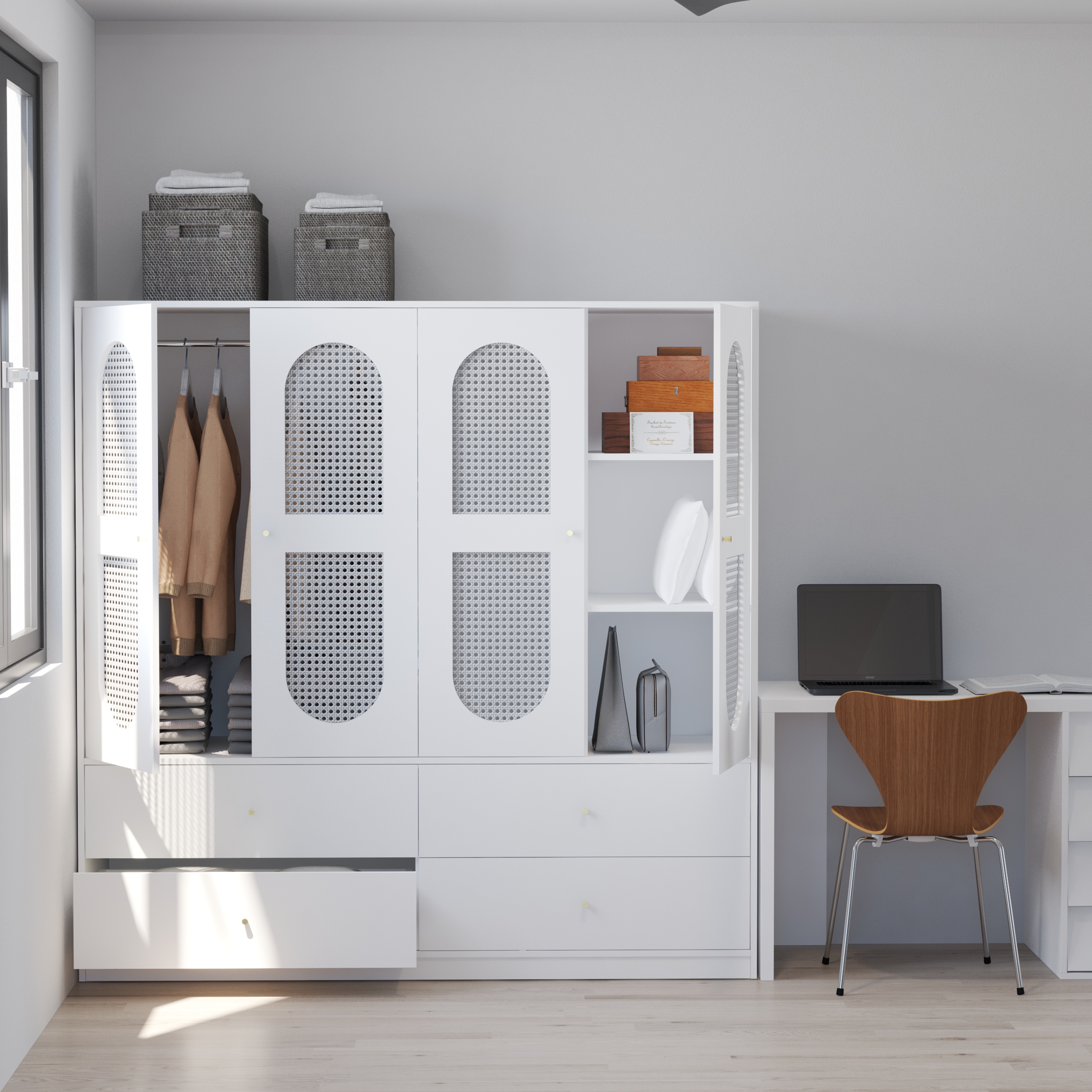 ✨HAPPY FURNITURE , Tủ quần áo 4 cửa mở 4 ngăn kéo - MAY , TCM_250 , 180cm x 54cm x 180cm DxRxC