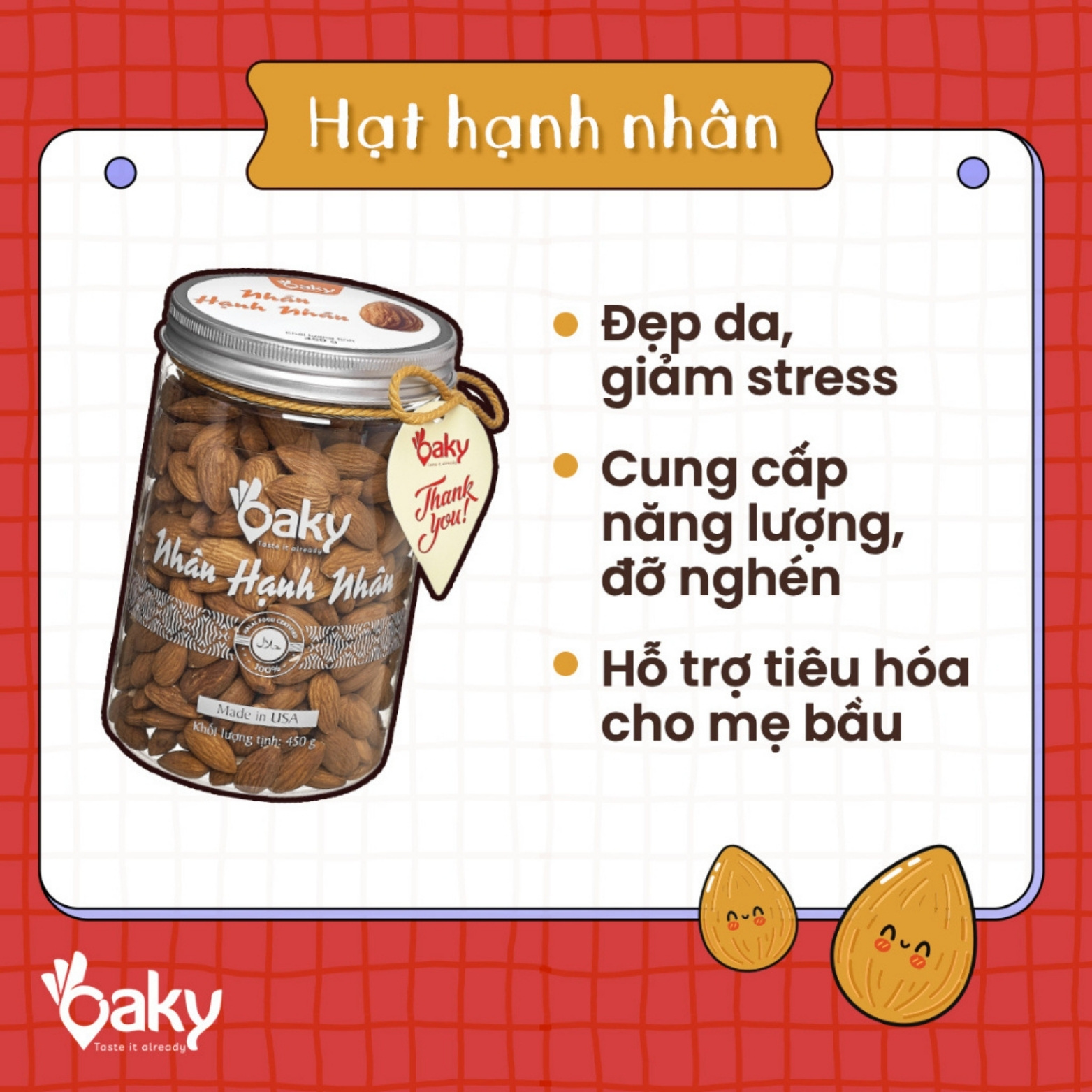 Nhân Hạnh Nhân Rang Oaky 450g – Nhập Khẩu Mỹ, Ăn Vặt Healthy Giàu Dinh Dưỡng