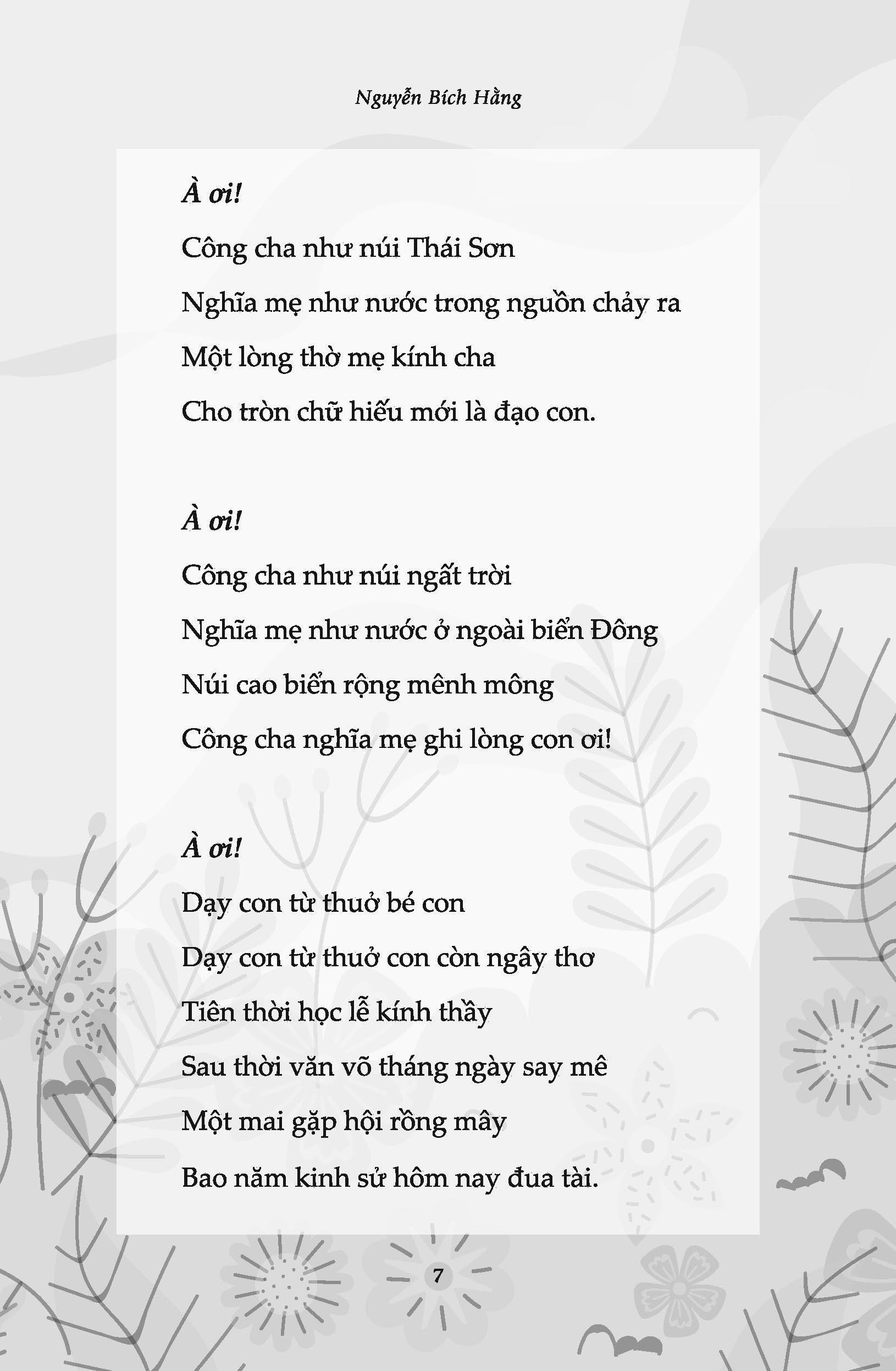 Đáp ứng nhu cầu của đông đảo bạn đọc trong cả nước, Tân Việt Books liên kết Nhà xuất bản Thanh Niên giới thiệu đến dộc giả cuốn Hát ru – Tập hợp những câu hát thấm đượm tình quê hương do tác giả Nguyễn Bích Hằng sưu tầm, biên soạn và sáng tác.