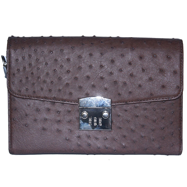Bóp/Ví da đà điểu Huy Hoàng da bụng kiểu đứng màu nâu đất, nâu đỏ, đen, vàng bò 2408-09-10-18