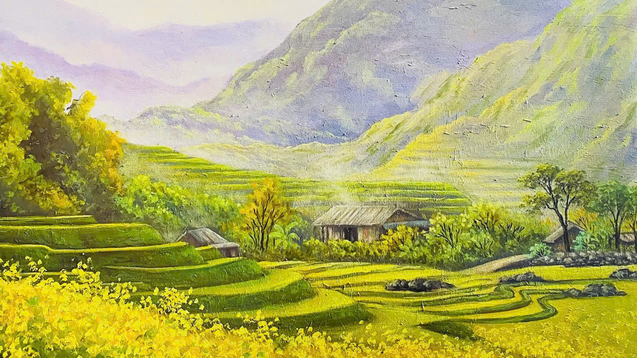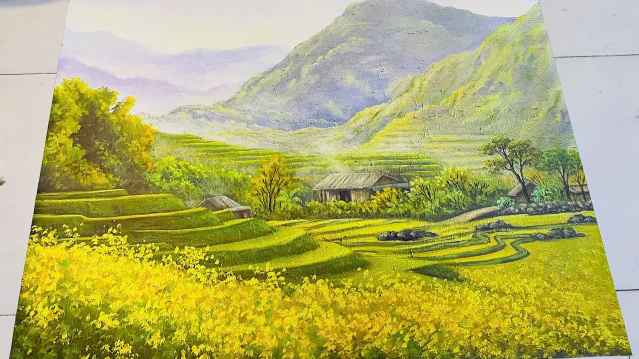 Tranh treo tường làng quê Việt Nam yên bình - Kích thước của tranh : Kích thước : 45x70cm - 50x80cm - 60x100cm - 70x120cm - Chất liệu : Tráng gương - Khách hàng muốn