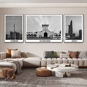 ✨(HCM) Tranh treo tường cảnh Sài Gòn trắng đen trang trí quán, phòng làm việc, nhà hàng, khách sạn