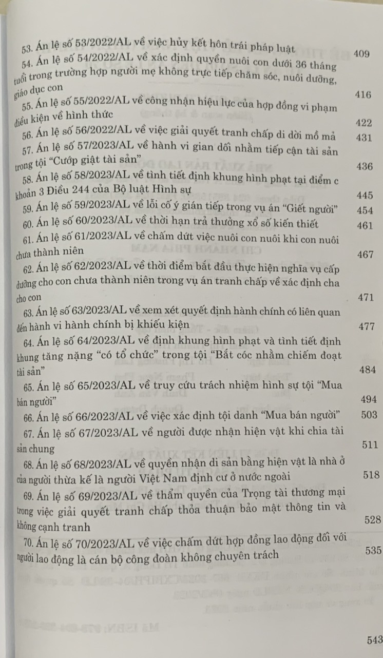 Để thuận tiện cho việc nghiên cứu, tìm hiểu, vận dụng án lệ trong quá trình thực hiện nhiệm vụ xét xử của Tòa án; giúp các cơ quan, tổ chức, cá nhân quan tâm tới hoạt động của Tòa án có thể tiếp cận với các án lệ đã ban hành; tạo nguồn tham khảo cho các hoạt động giảng dạy, nghiên cứu khoa học của các cơ quan, tổ chức, cá nhân, Nhà xuất bản Lao Động xuất bản và phát hành cuốn : “Hệ thống án lệ Việt Nam (hiện hành) từ án lệ số 01 đến án lệ số 70”.