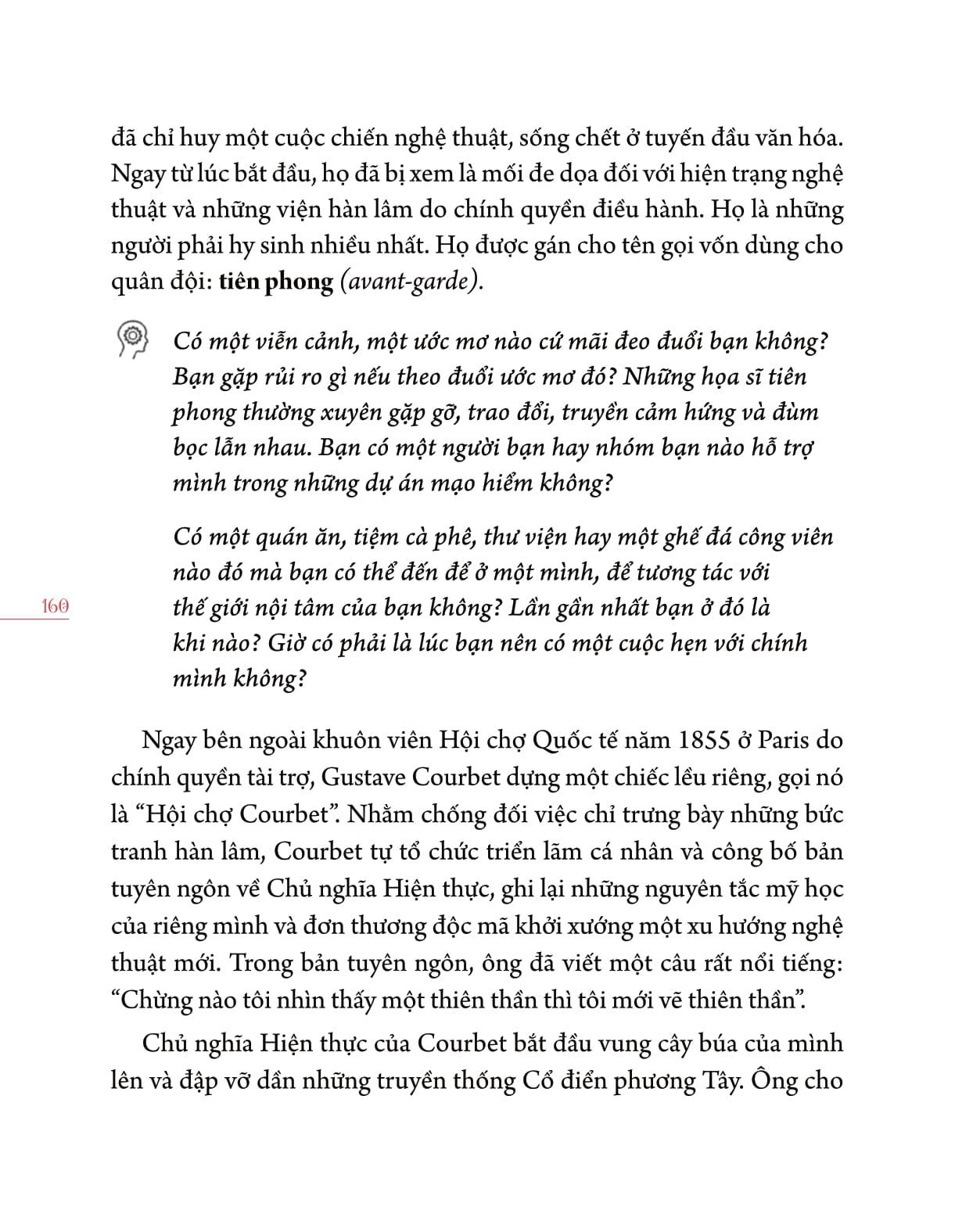 Quyển sách này cho bạn những hiểu biết cơ bản nhưng sâu sắc về mỹ thuật (đã được bạn "tiêu hóa" qua quá trình đọc và suy ngẫm). Để lần sau khi được mời dự triển lãm mỹ thuật, bạn sẽ tự tin dự và trao đổi cùng tác giả về cảm nhận của chính mình.