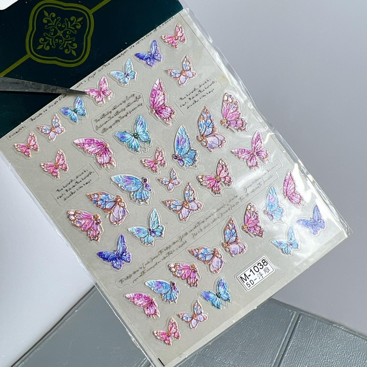 Sticker 5D Bướm Lụa Nổi Gắn Móng CA6993 Làm Nail, Miếng Dán Bướm Lụa 5D Nhiều Màu Trang Trí Hình Dán Móng Hàn Quốc Hiệu ứng 5D sống động: Miếng dán bướm lụa 5D với