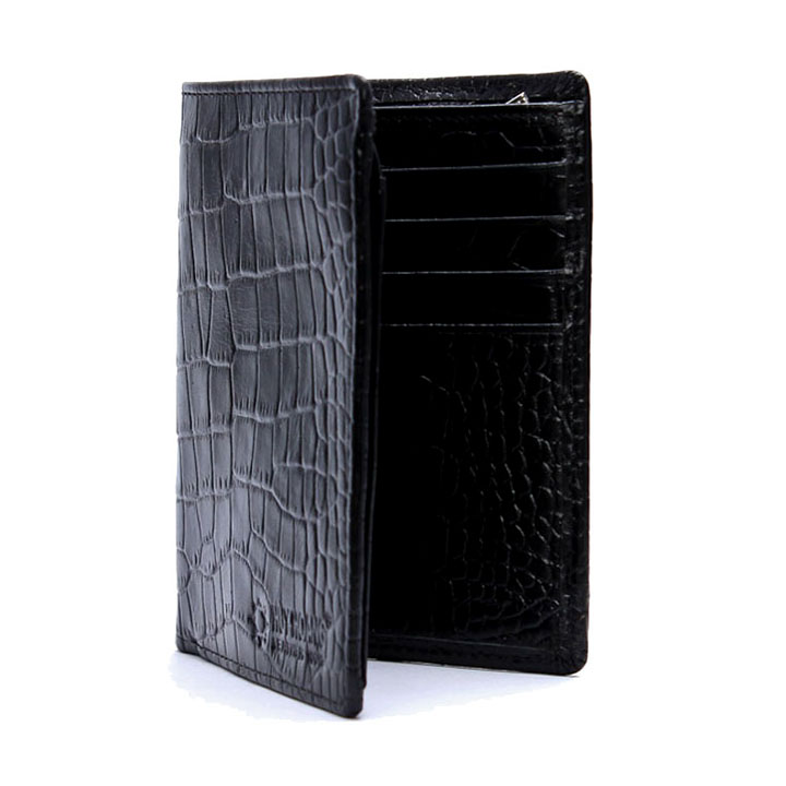 Ví/Bóp nam Huy Hoàng da bò vân cá sấu kiểu đứng màu đen 2120