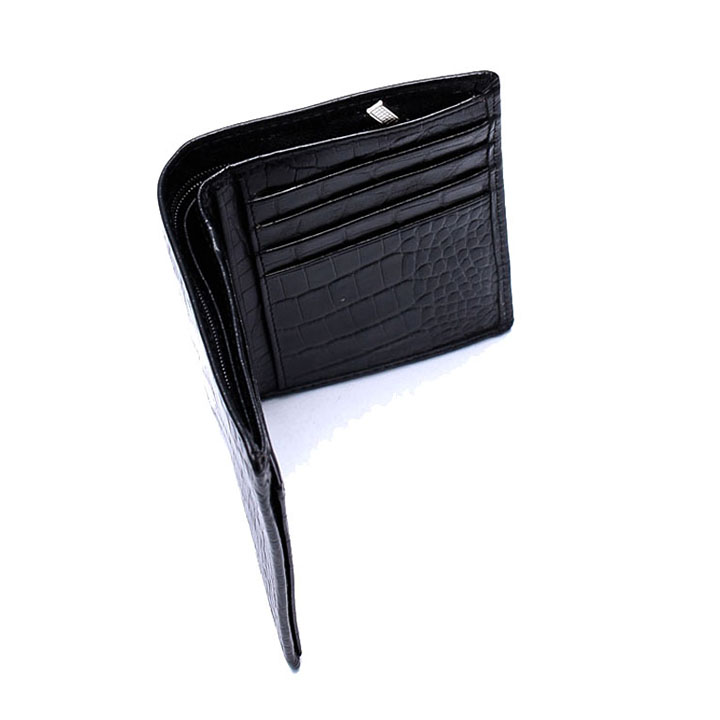 - Ví nam được làm bằng chất liệu da cá sấu cao cấp tạo kiểu dáng lạ mắt, sang trọng. - Thiết kế nhỏ gọn, thời trang, dạng ví nam xếp đôi, có nhiều ngăn