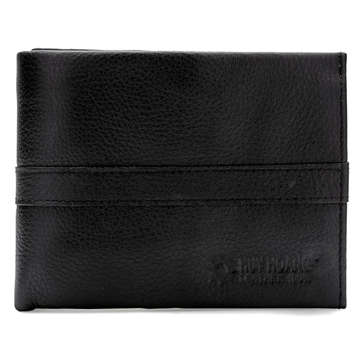 Ví/Bóp nam Huy Hoàng da bò sọc ngang màu đen 2132