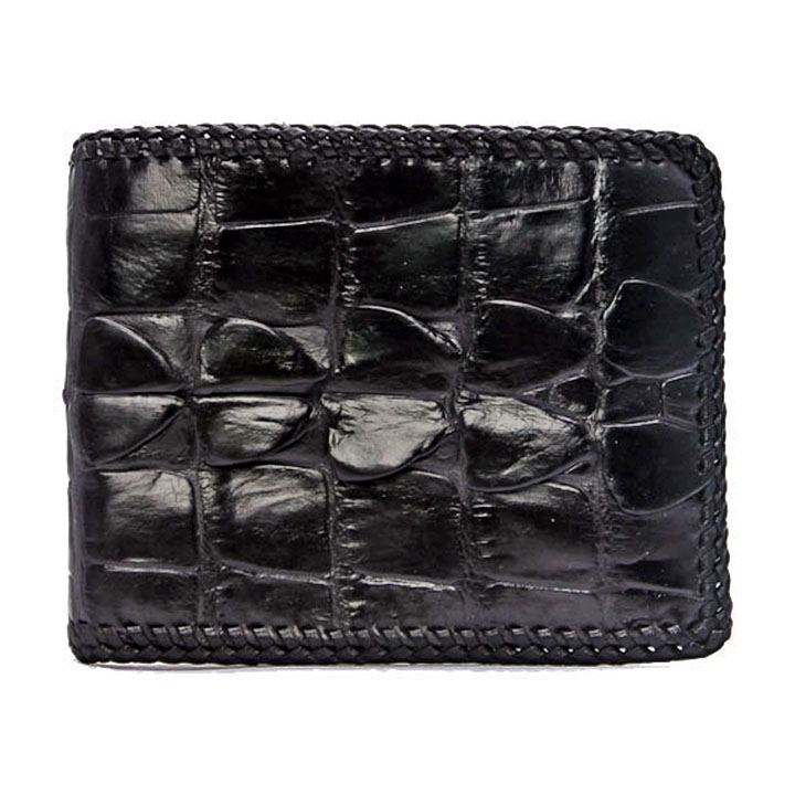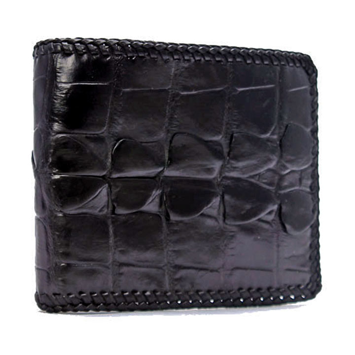 Bóp/Ví da cá sấu Huy Hoàng đan viền da bụng màu đen, nâu đất, nâu đỏ, vàng bò 2254-2711-2712-2713