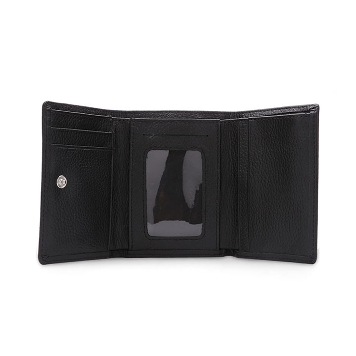 Ví/Bóp nữ da bò cao cấp Huy Hoàng 3 gấp màu đen 3126