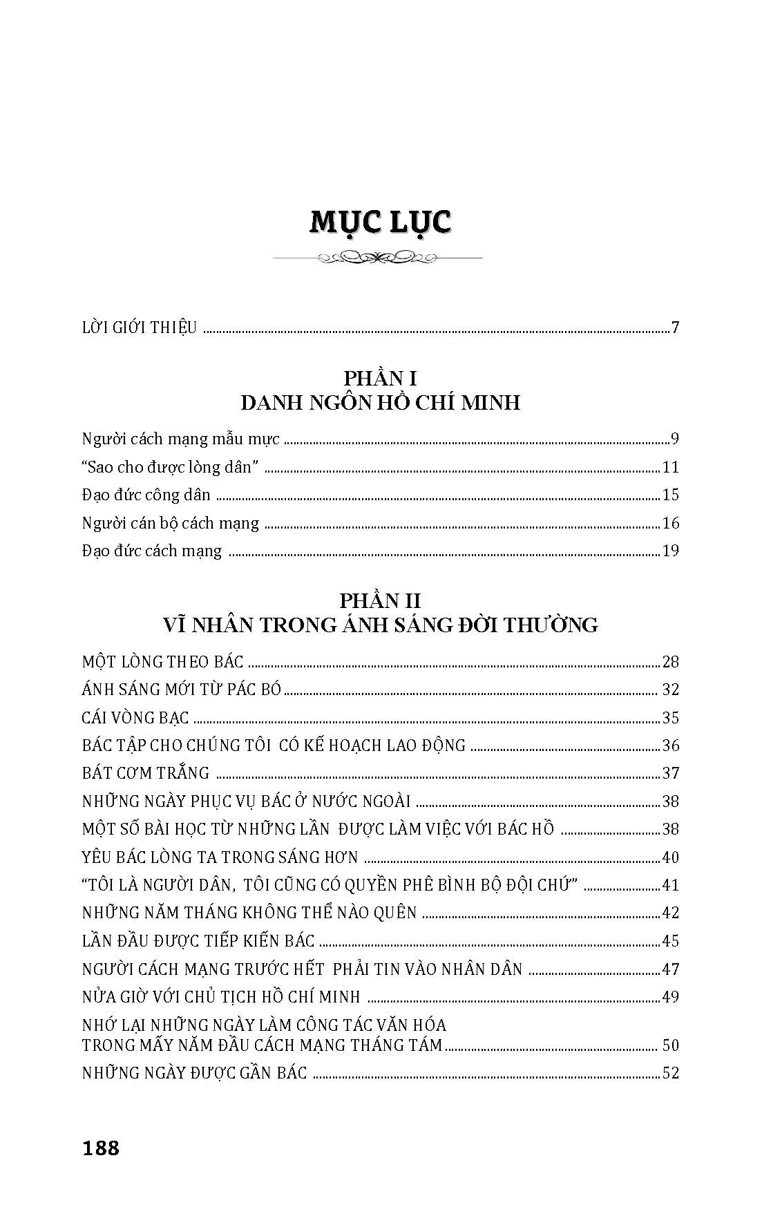 Mua tại TiktokTấm gương sáng ngời về phẩm chất đạo đức, tượng trưng cho những gì cao đẹp nhất trong tâm hồn, ý chí, nhân cách của dân tộc và của loài người – Chủ tịch Hồ Chí Minh, một lãnh tụ cách mạng vĩ đại, một người cộng sản vĩ đại, với những câu chuyện thành bài học lịch sử thể hiệnphong cách ứng xử, sự tài trí, qua đó đã thu phục, cảm hóa, khơi dậy và phát huy điều thiện ở mỗi con người để học tập noi theo, để làm một người cách mạng mẫu mực, một người công dân tốt.
