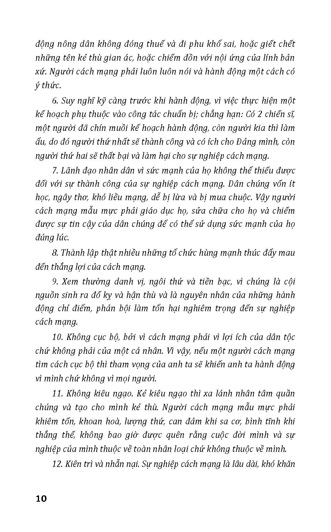 Chí khí cách mạng kiên cường, tinh thần độc lập tự chủ, lòng yêu nước, yêu nhân dân tha thiết, cùng đạo đức cần, kiệm, liêm, chính, chí công vô tư, khiêm tốn và giản
