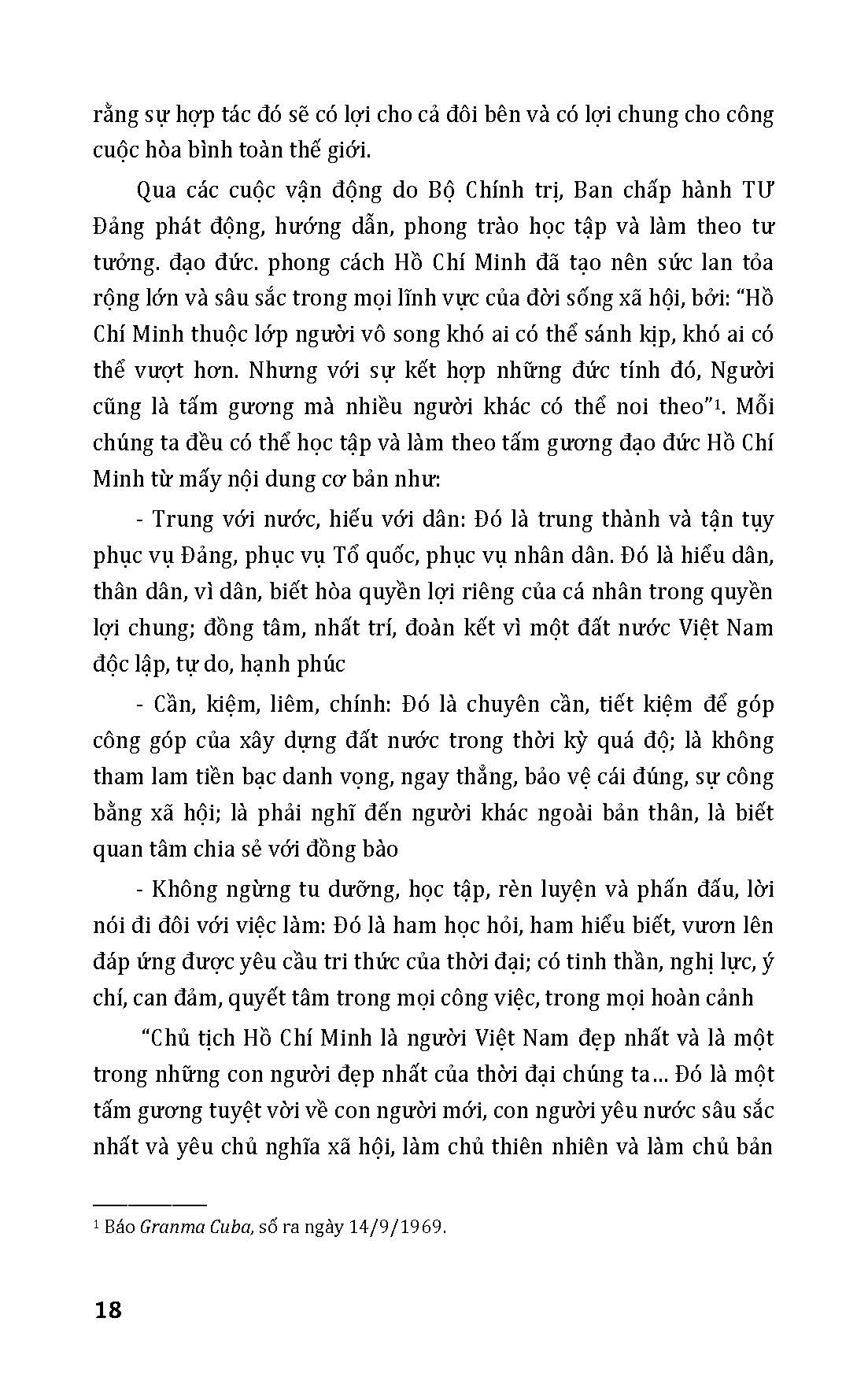 Mua tại TiktokNhững bài học sâu sắc cùng lời dạy quý báu của Chủ tịch Hồ Chí Minh về vai trò, vị trí, những chuẩn mực đạo đức cách mạng dành cho người cán bộ đảng viên mà Người chính là tấm gương đạo đức sáng ngời. Tư tưởng, đạo đức và phong cách của Người luôn nhất quán qua mọi suy nghĩ, lời nói, hành động, luôn cống hiến vì nước, vì dân, và mãi là kim chỉ nam để mọi thế hệ tu dưỡng, rèn luyện, ngày càng trở nên hoàn thiện hơn, vươn tới những giá trị văn hoá chân - thiện -mỹ trong bất kỳ hoàn cảnh nào của cuộc sống.