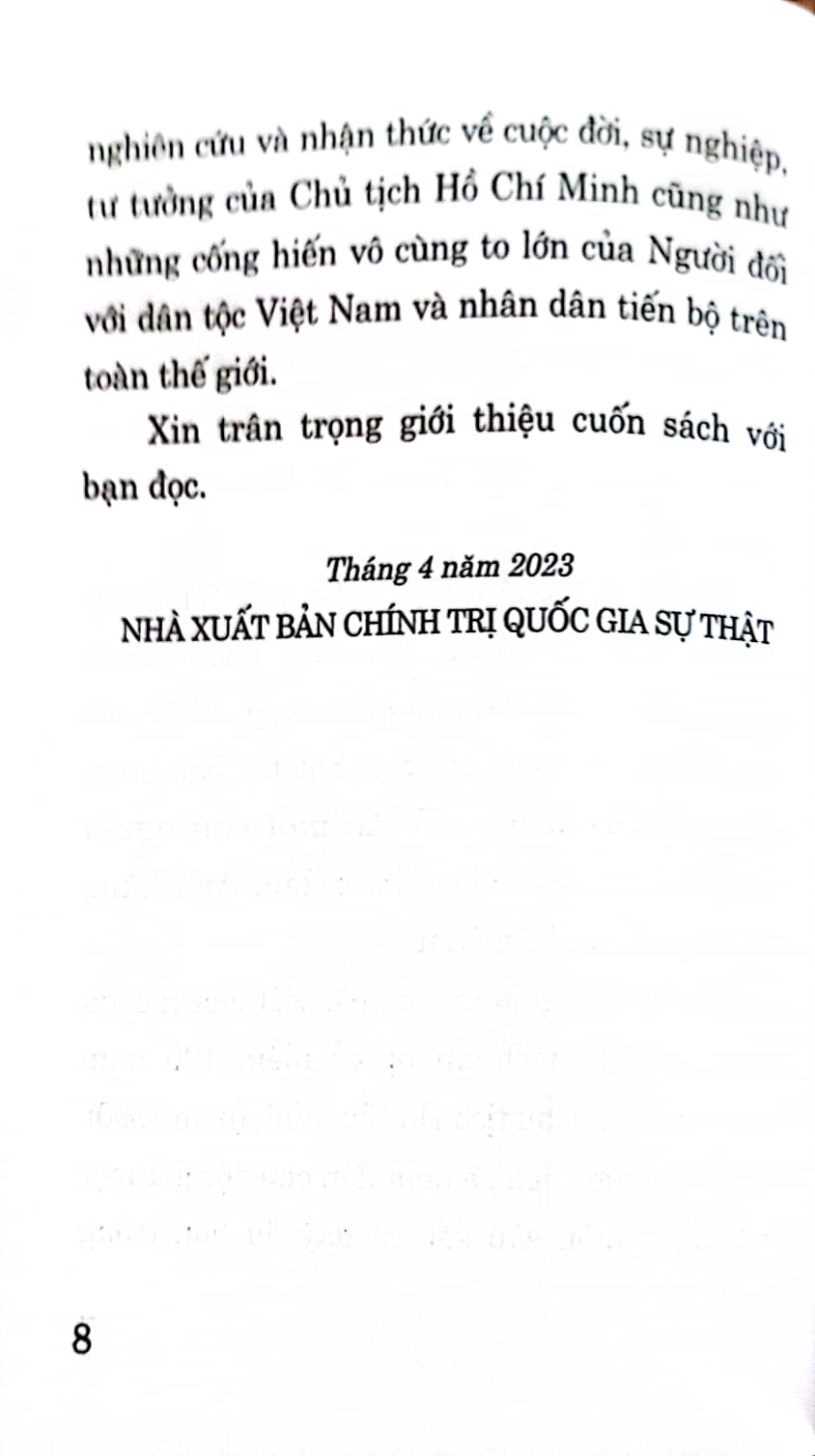 Mua tại TiktokCuốn sách gồm một số bài viết của tác giả trong thời gian chuẩn bị kỷ niệm 100 năm Ngày sinh của Chủ tịch Hồ Chí Minh (năm 1990). Cuốn sách sẽ đem đến cho độc giả một cách nhìn mới, sâu sắc và đầy đủ hơn trong nghiên cứu và nhận thức về cuộc đời, sự nghiệp, tư tưởng của Chủ tịch Hồ Chí Minh cũng như những cống hiến vô cùng to lớn của Người đối với dân tộc Việt Nam và nhân dân tiến bộ trên toàn thế giới.
