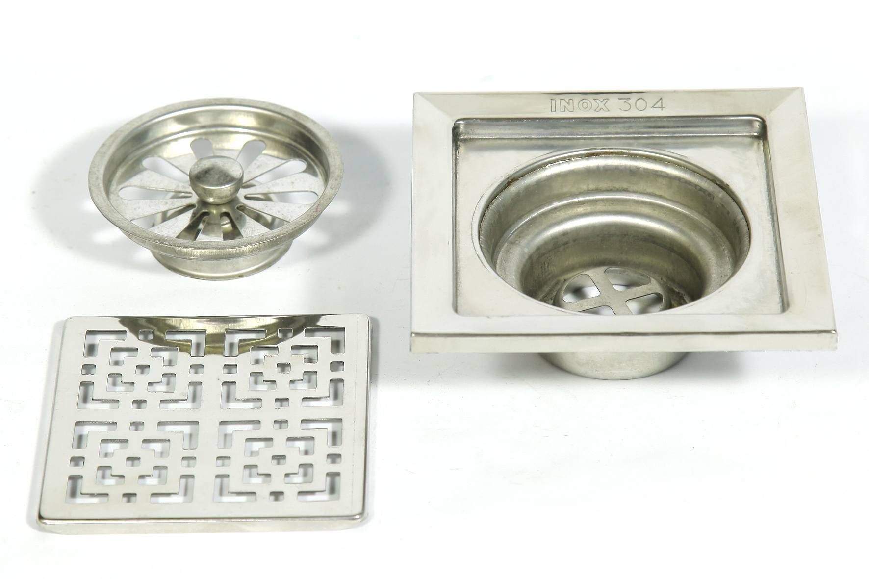 Hố Ga Phểu Thoát Sàn Inox, có 2 mẫu, với kích thước sau: 1. Mẫu phểu dập, dày 0.4mm, kích thước vuông 12cm, 15cm 2. Mẫu phểu đúc, dày 1.2mm, kích thước vuông 10cm, 12cm,