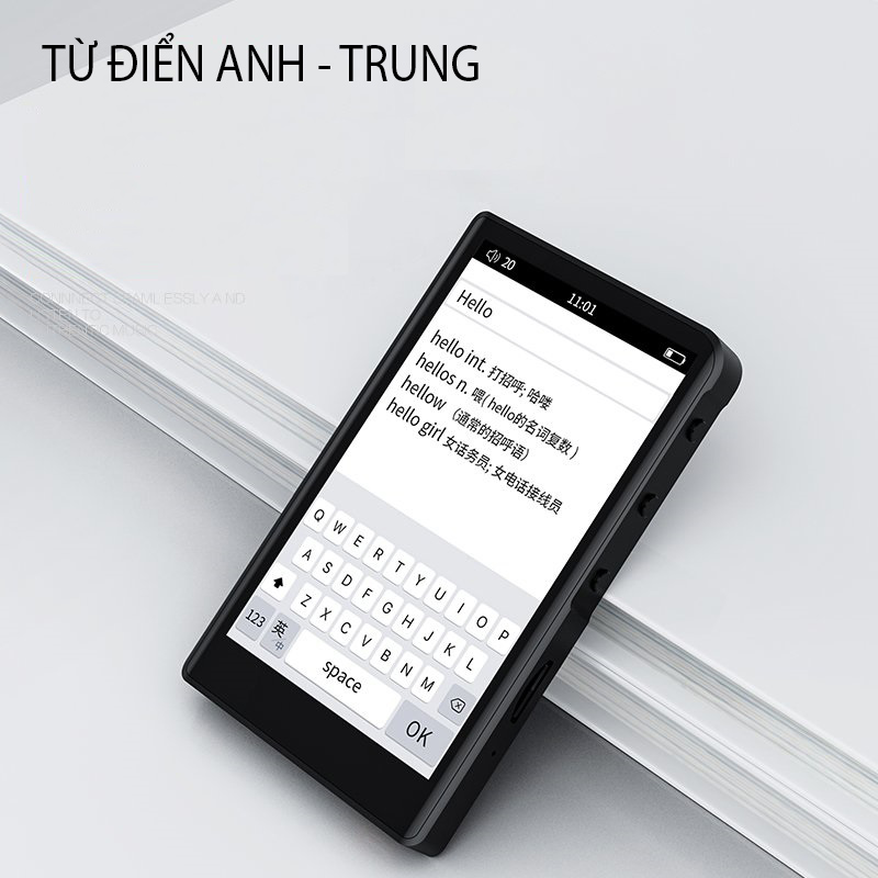 - Máy nghe nhạc Ruizu C3 thiết kế gọn nhẹ mặt lưng xuyên thấu và đèn nền xung quanh, màn hình cảm ứng 2.4 inch mặt kính trong mang lại hình ảnh sắc nét, từ điển dành
