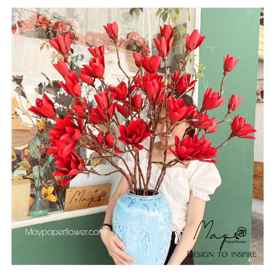 Hoa mộc lan có ý nghĩa tốt đẹp nên được nhiều khách hàng yêu thích cộng thêm cành hoa làm handmade từ thép dài nên dễ dàng uốn bẻ cong tạo thế cho phù hợp với nhiều bình hoa.