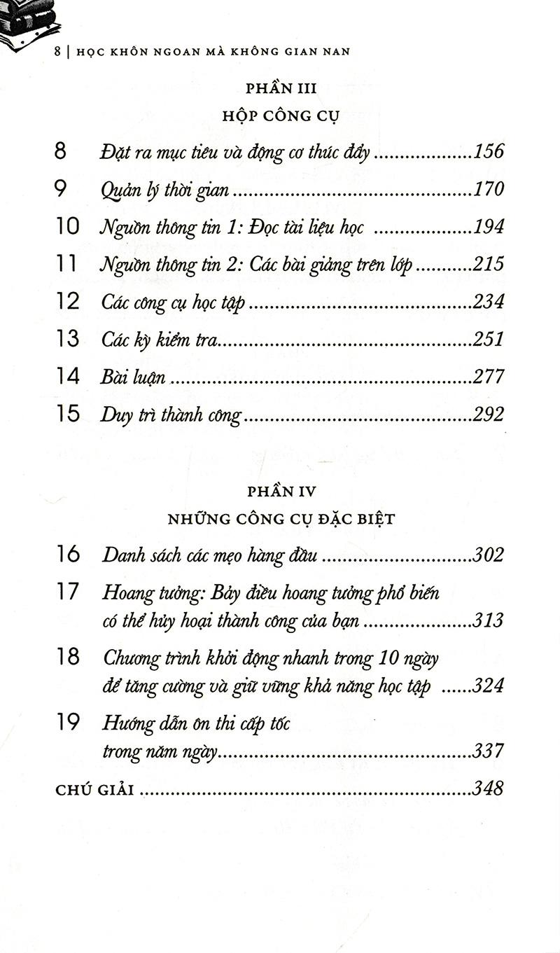 Mọi công việc đều có những quy trình bảo đảm tính hệ thống và kết quả của công việc. Học tập cũng vậy. Kevin Paul giúp cho độc giả thấy được tầm quan trọng của bước chuẩn bị cũng như của việc xác định mục tiêu học tập. Tác giả cũng cung cấp những kỹ năng cần thiết cho việc tạo động lực học tập, ghi chép, ghi nhớ, liên hệ vận dụng và khả năng tập trung.