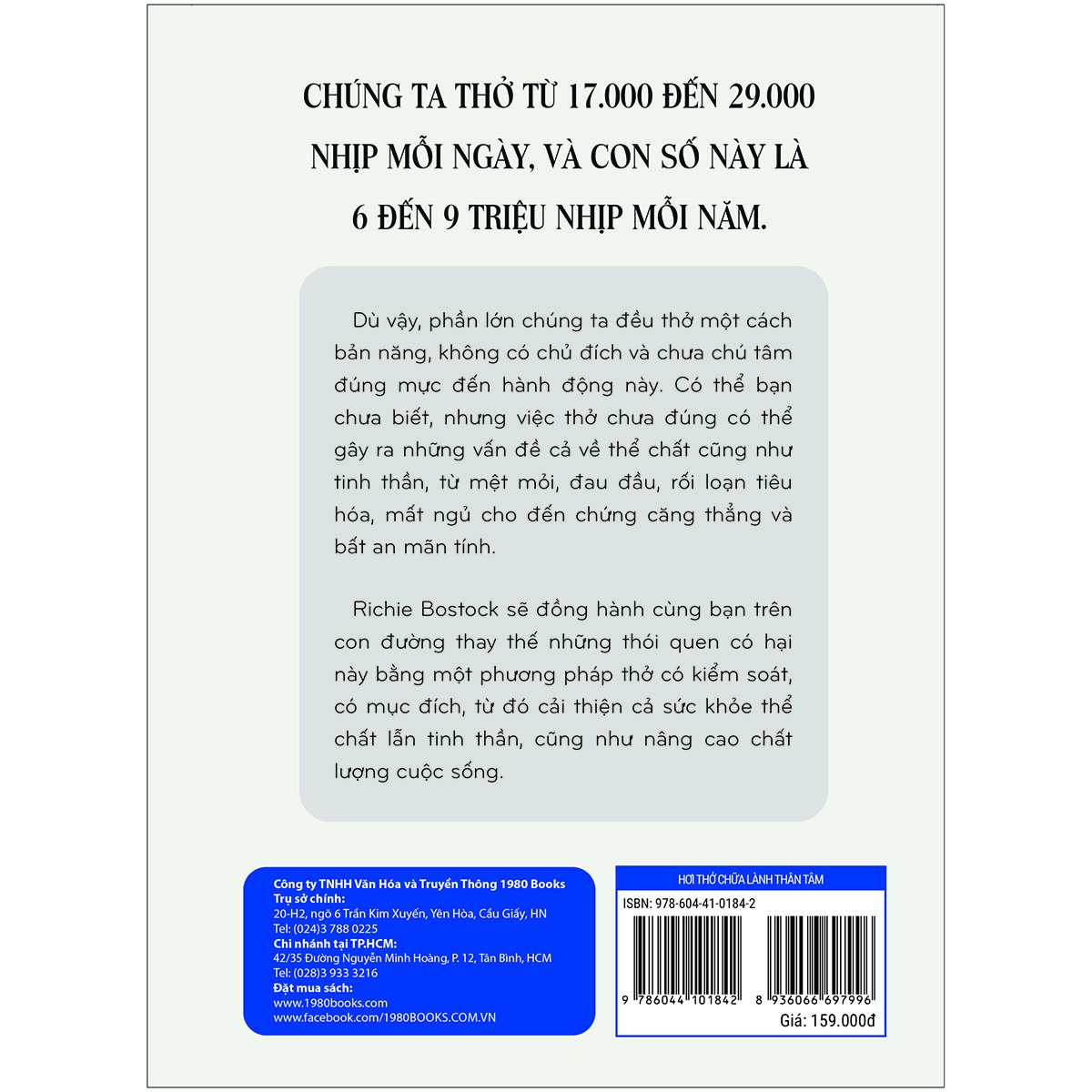 Richie Bostock sẽ đồng hành cùng bạn trên con đường thay thế những thói quen có hại này bằng một phương pháp thở có kiểm soát, có mục đích, từ đó cải thiện cả sức khỏe thể chất lẫn tinh thần, cũng như nâng cao chất lượng cuộc sống.